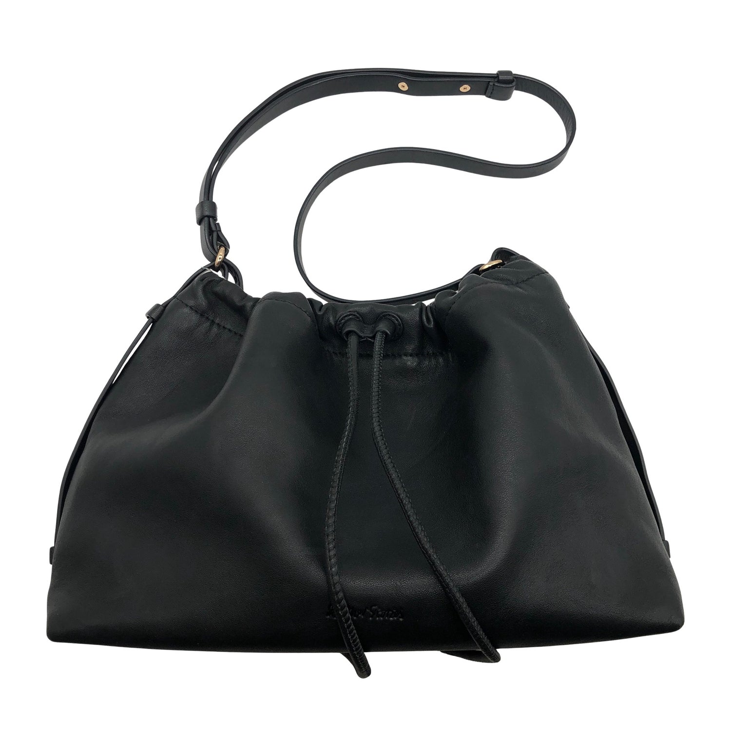 Nahkaa. Olkahihnan pituus on säädettävissä. Magneettikiinnitys. Tuotteen pinnassa on aavistus pesu-/käyttökulumaa. Yleisilme on siisti.