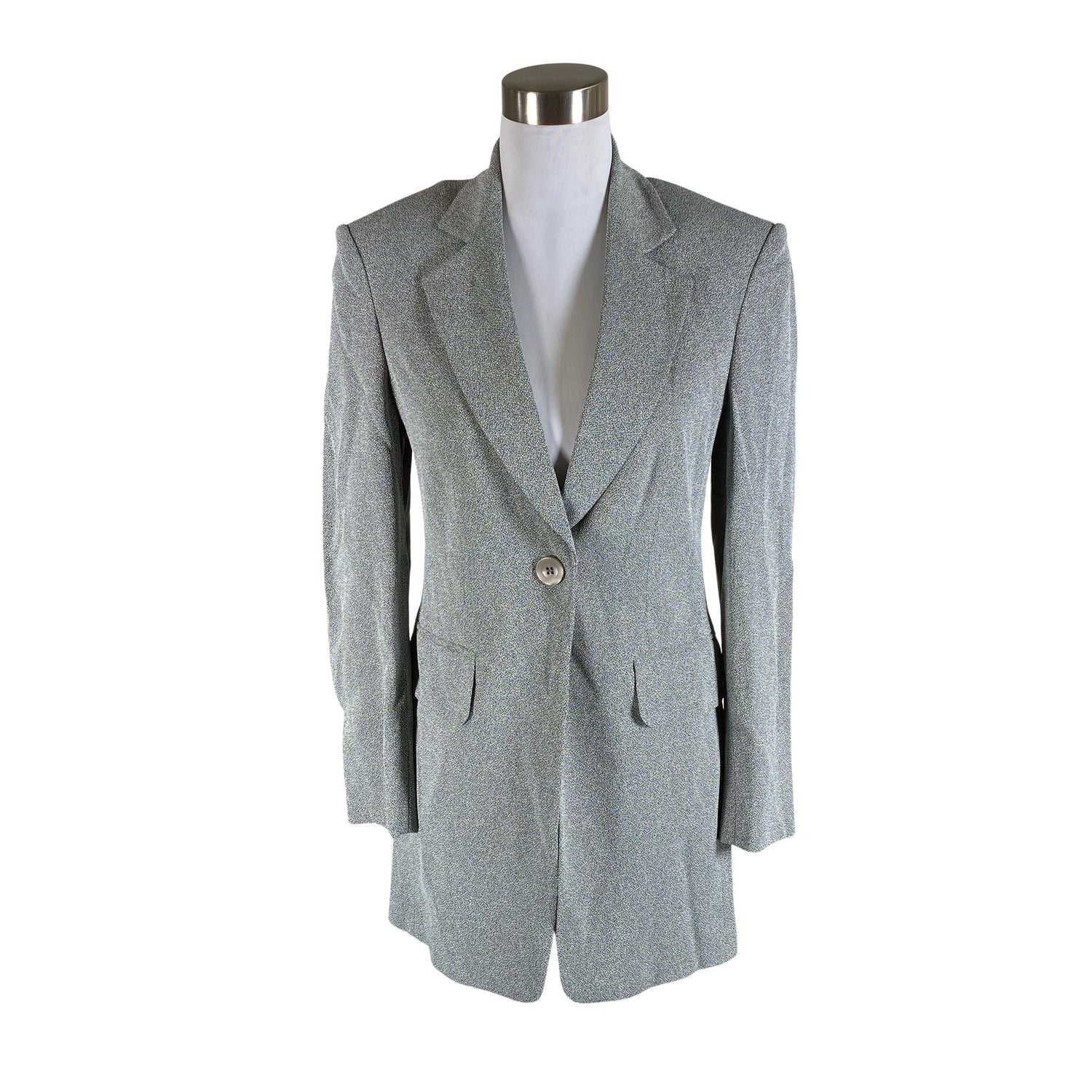 Tuotteessa on ohut vuori. Olkatoppaukset. Kauluksen sisäpuolella on aavistus tummentumaa. Tuote on muilta osin hyvässä kunnossa.