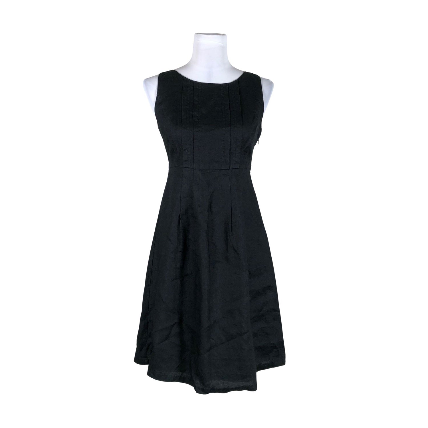 Pellavaa. Materiaali ei jousta. Sivusaumassa on vetoketju. Tuotteen pinnassa on aavistus pesu-/käyttökulumaa. Deodorantin tahraa aavistus kainaloissa. Tuotteen pinta on aavistuksen haalistunut. Yleisilme on siisti.
