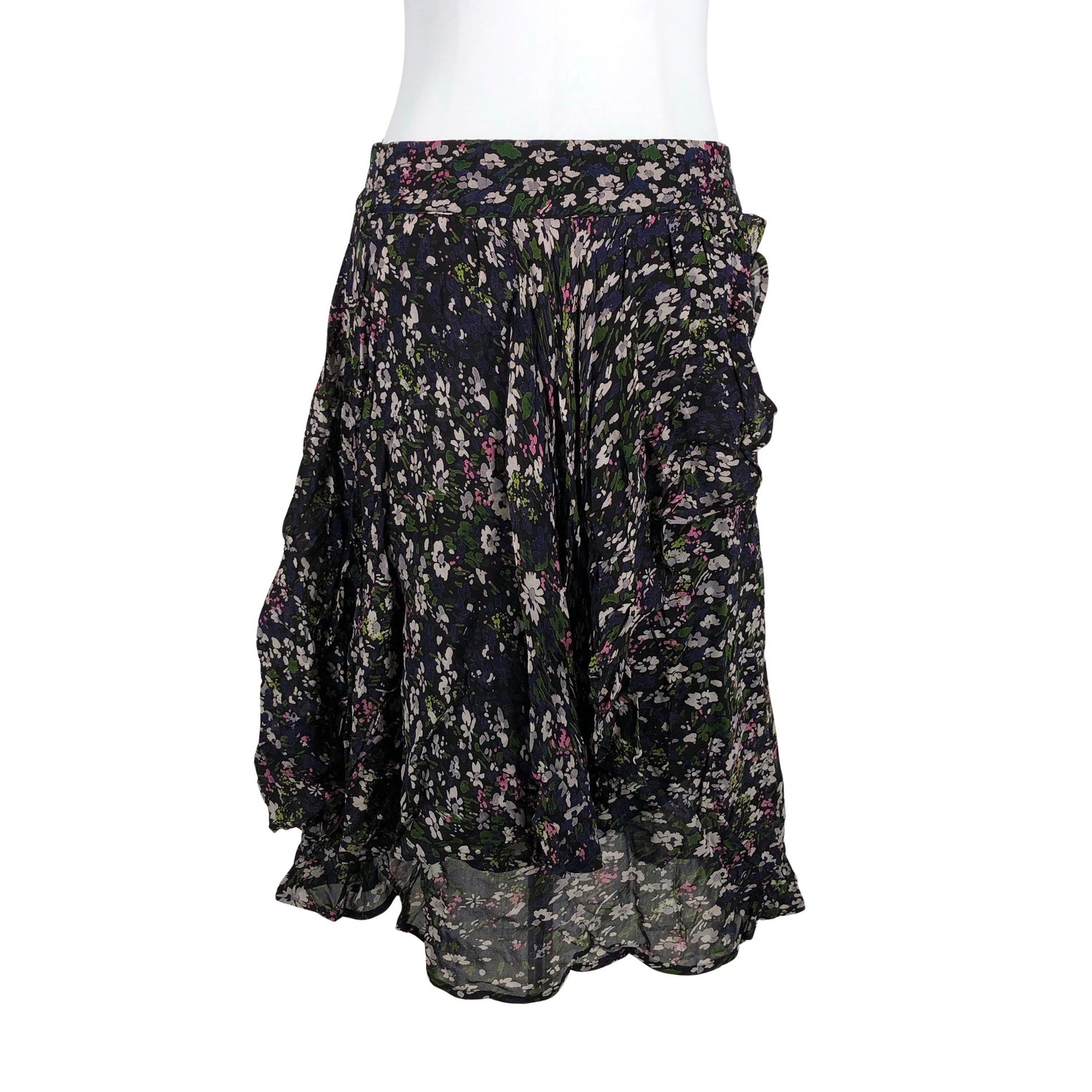 Joustava vyötärö. Ohutta materiaalia. Tuotteen pinnassa on langannousu/langankiristymä. Tuote on muilta osin hyvässä kunnossa.