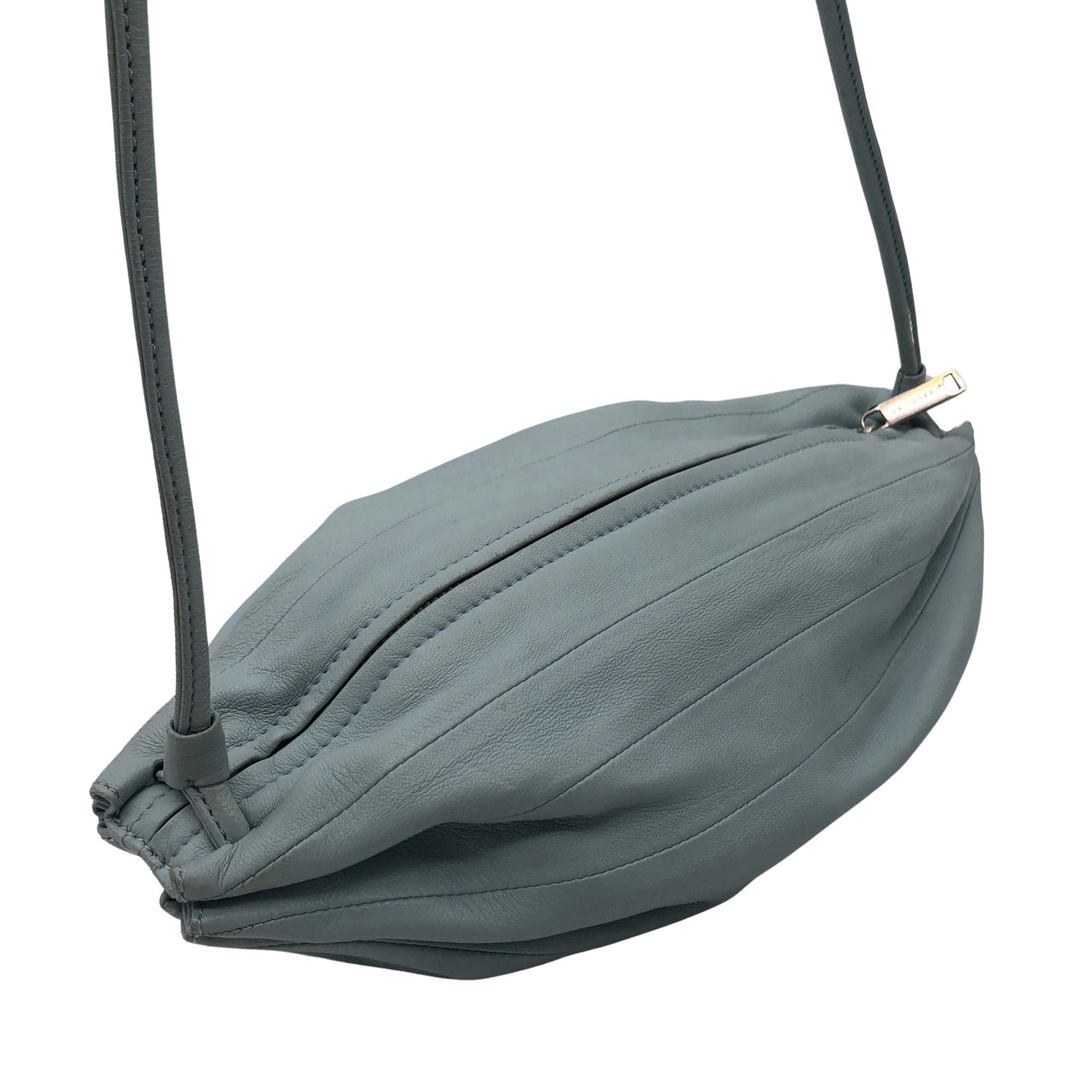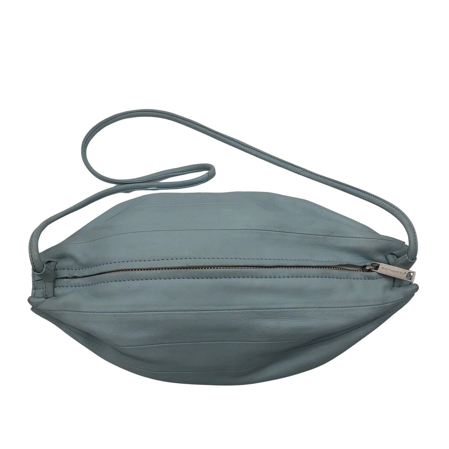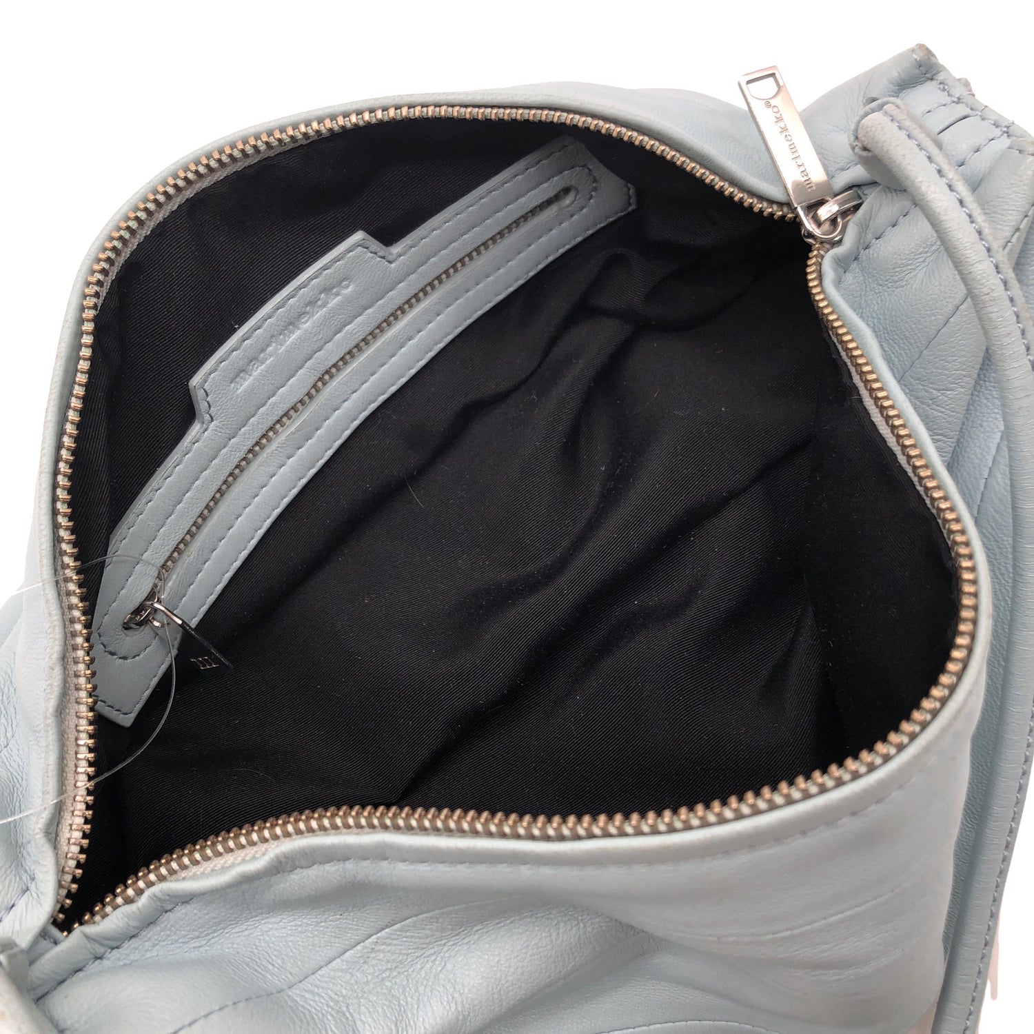 Malli: Karla. Tuotteessa on vetoketjullinen tasku. Materiaalitieto puuttuu. Todennäköisesti nahkaa. Crossbody. Tuotteen pinnassa on aavistus käyttölikaa. Tuote on muilta osin hyvässä kunnossa.