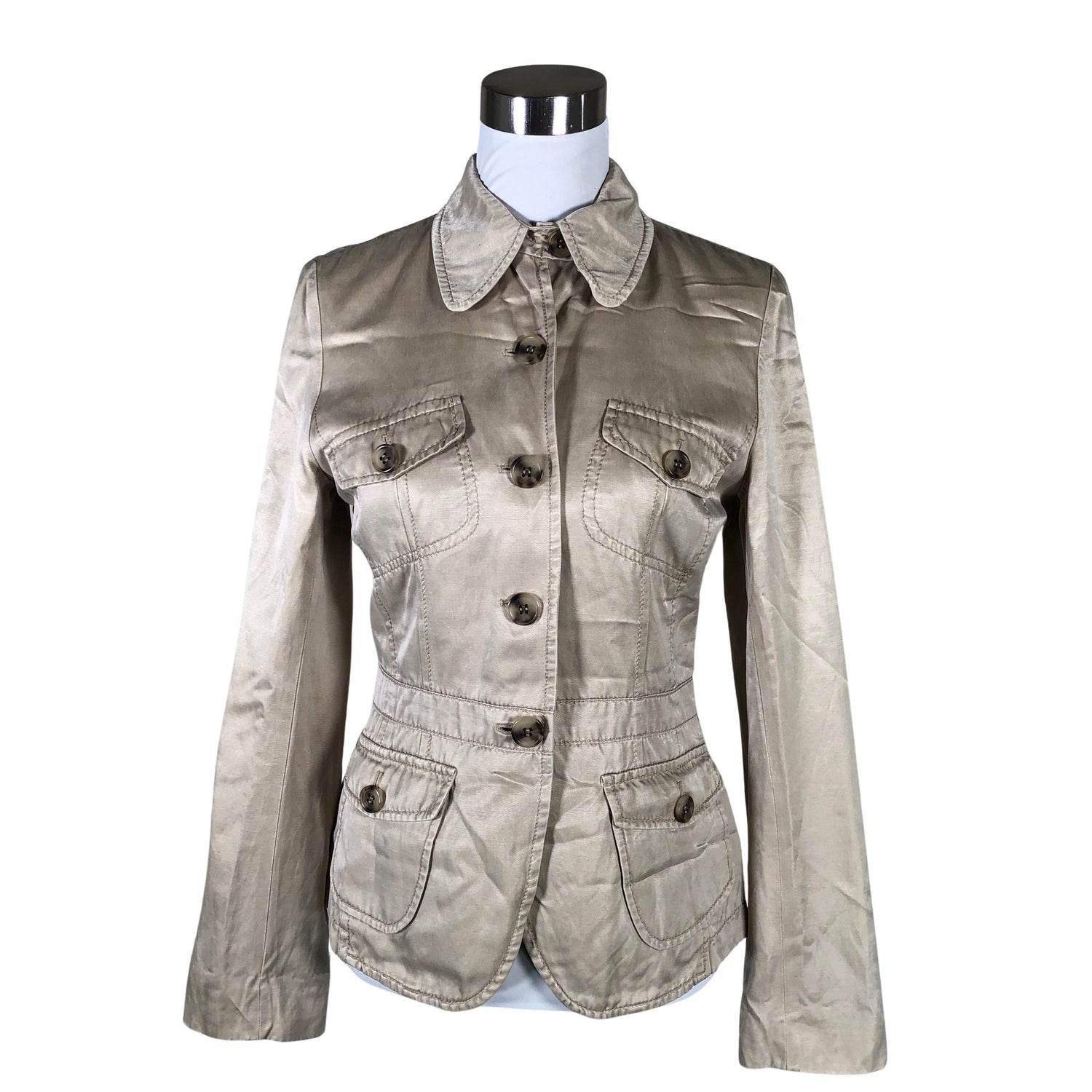 Malli: Courtney. Puuvillasekoitetta. Langassa on kiiltoa. Takki/ jakku. Tuotteen pinnassa on aavistus pesu-/käyttökulumaa. Yleisilme on siisti.
