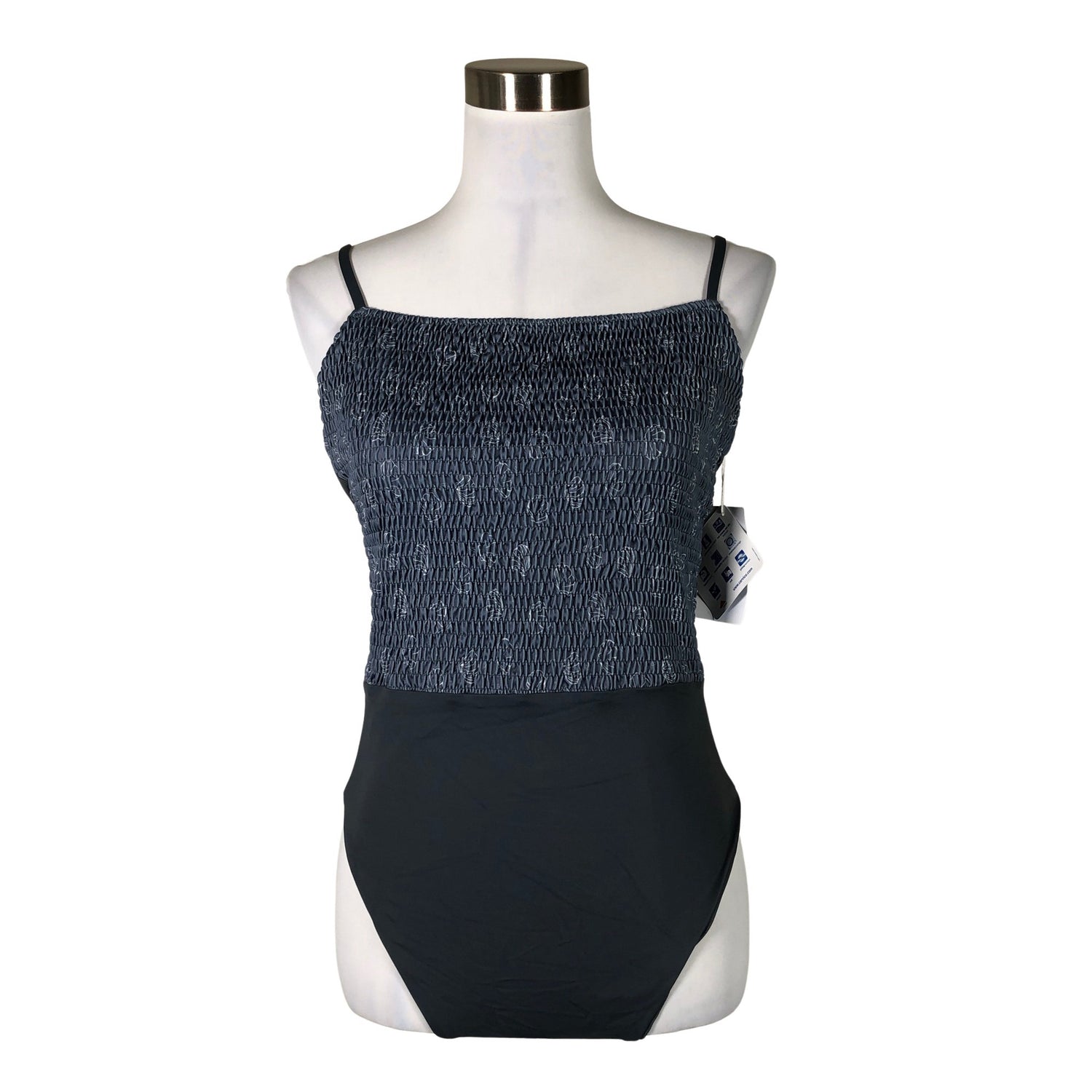 Tuotteessa on joustava kuminauharypytys. Säädettävät olkaimet. Materiaali joustaa. Tuote on valmistettu osittain kierrätysmateriaalista. Väri: siniharmaa.