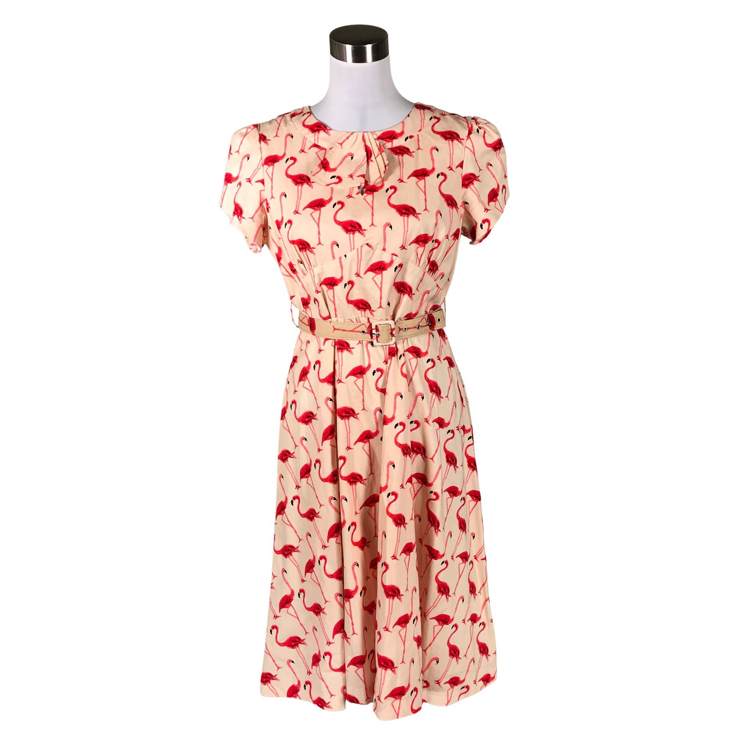 Tuote on osittain vuoritettu. Vetoketju takana. Tuotteeseen kuuluu vyö. Kellomainen helma. Materiaali joustaa.