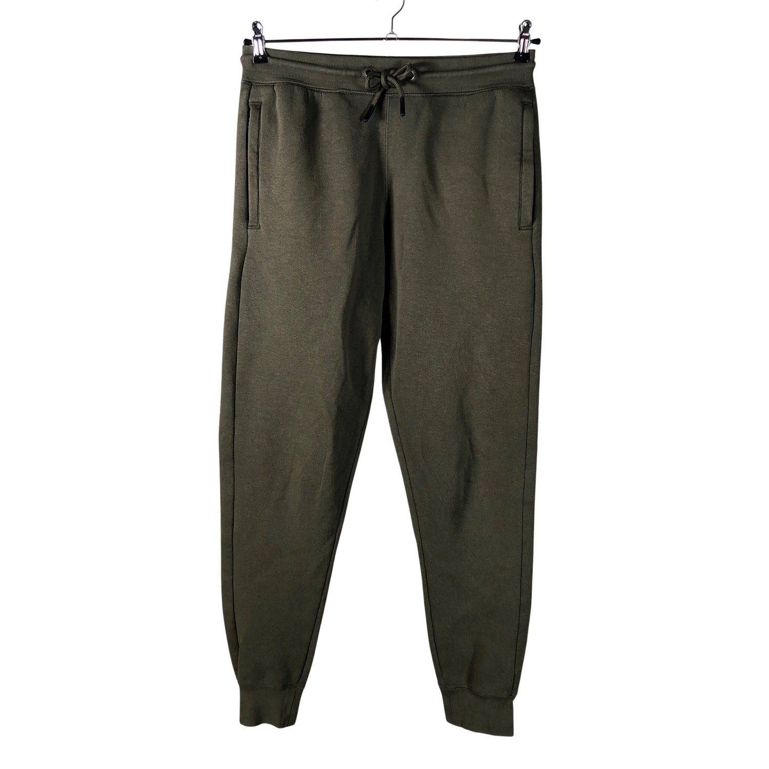 Pehmeäksi harjattu sisäpinta. Kiristysnauha vyötäröllä. Tuotteen taskuissa on vetoketjut. Materiaali joustaa. Tuotteen pinnassa on hieman pesu-/käyttökulumaa. Yleisilme on siisti.