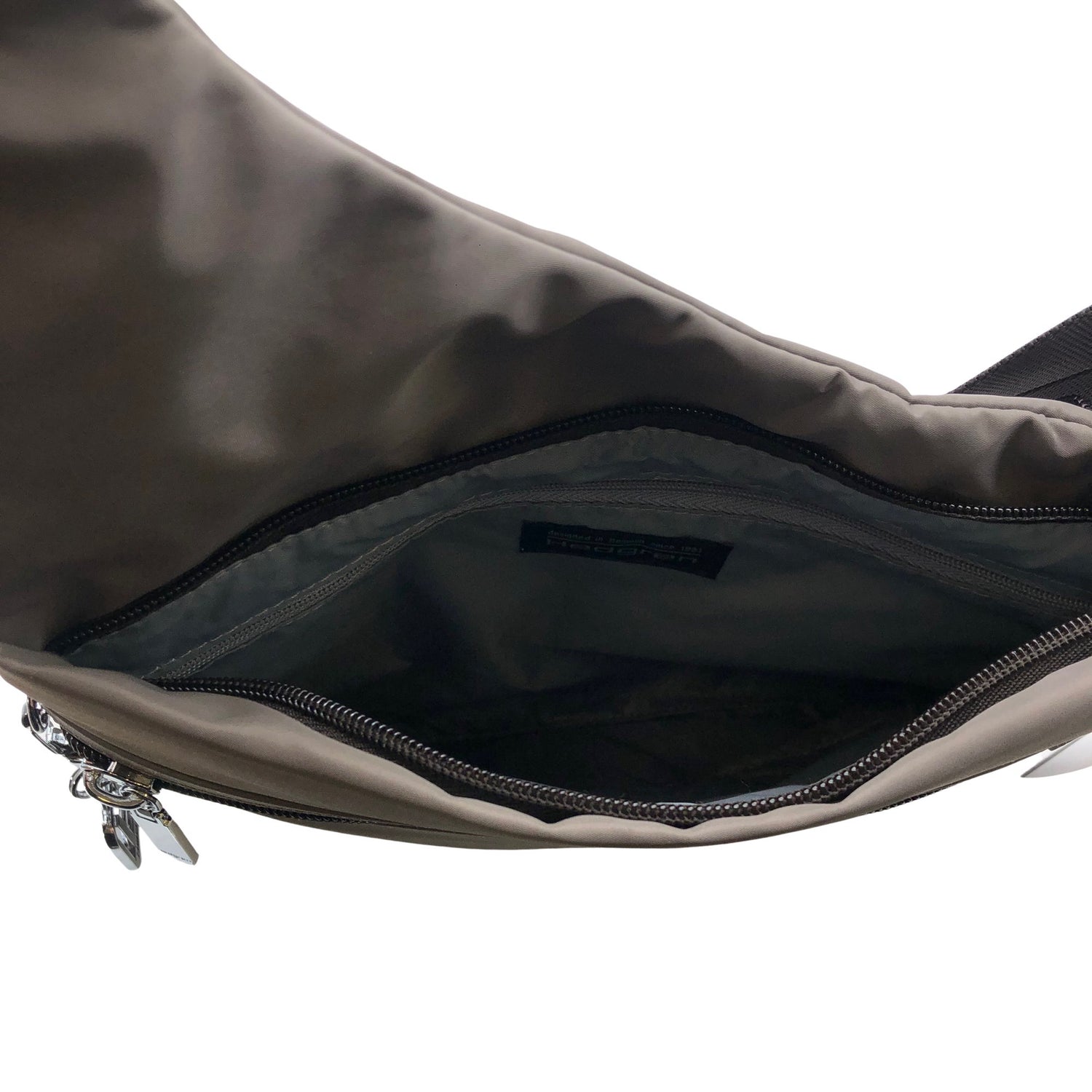 Olkahihnan pituus on säädettävissä. Tuotteessa on vetoketjullinen tasku.