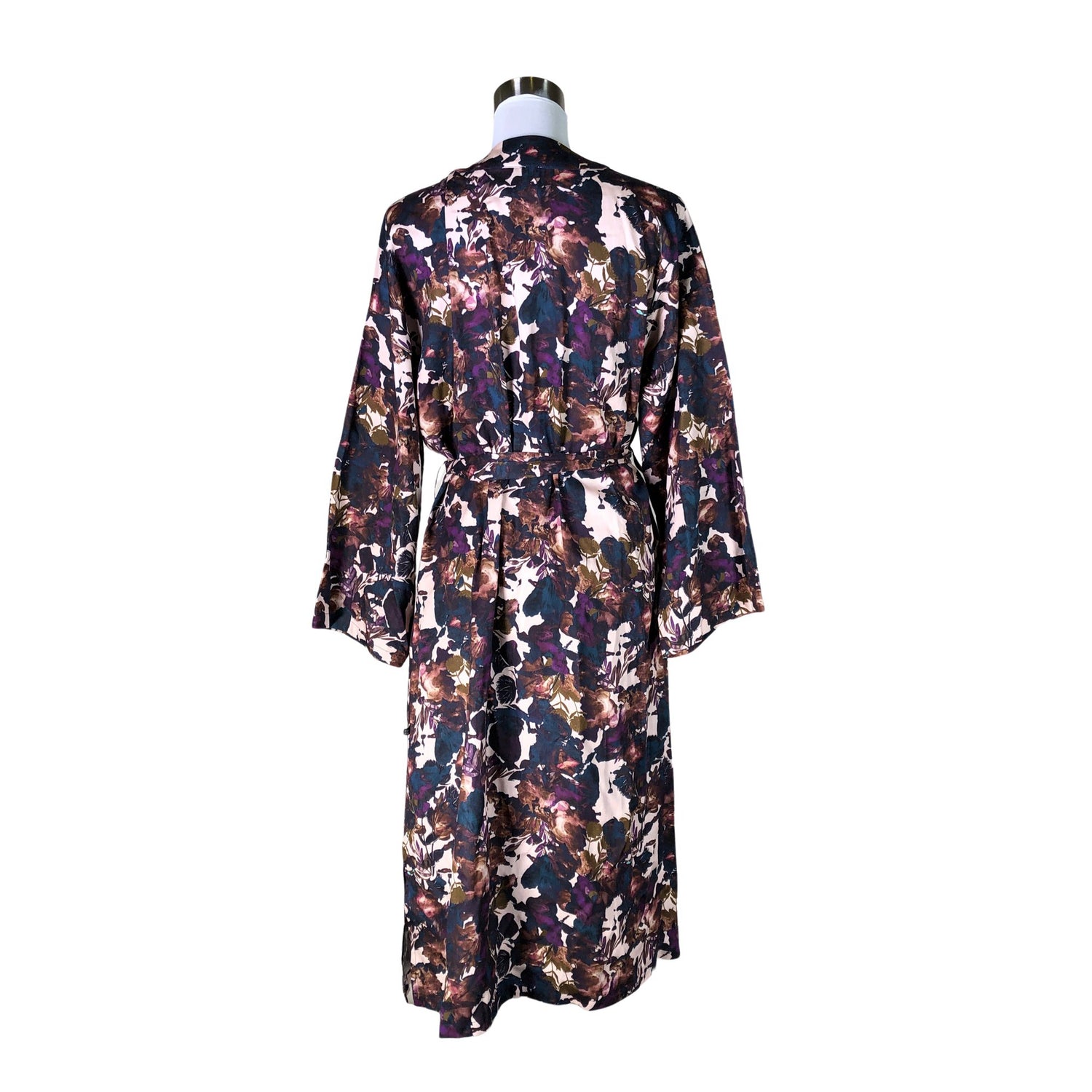Malli: Kimono Coat, Midnight Garden. Materiaali ei jousta. Pitkä malli. Sivusaumoissa on halkiot. Kiristysnauha vyötäröllä. Monikäyttöinen tuote. Arkeen ja juhlaan. Sopii sisä- ja ulkokäyttöön.