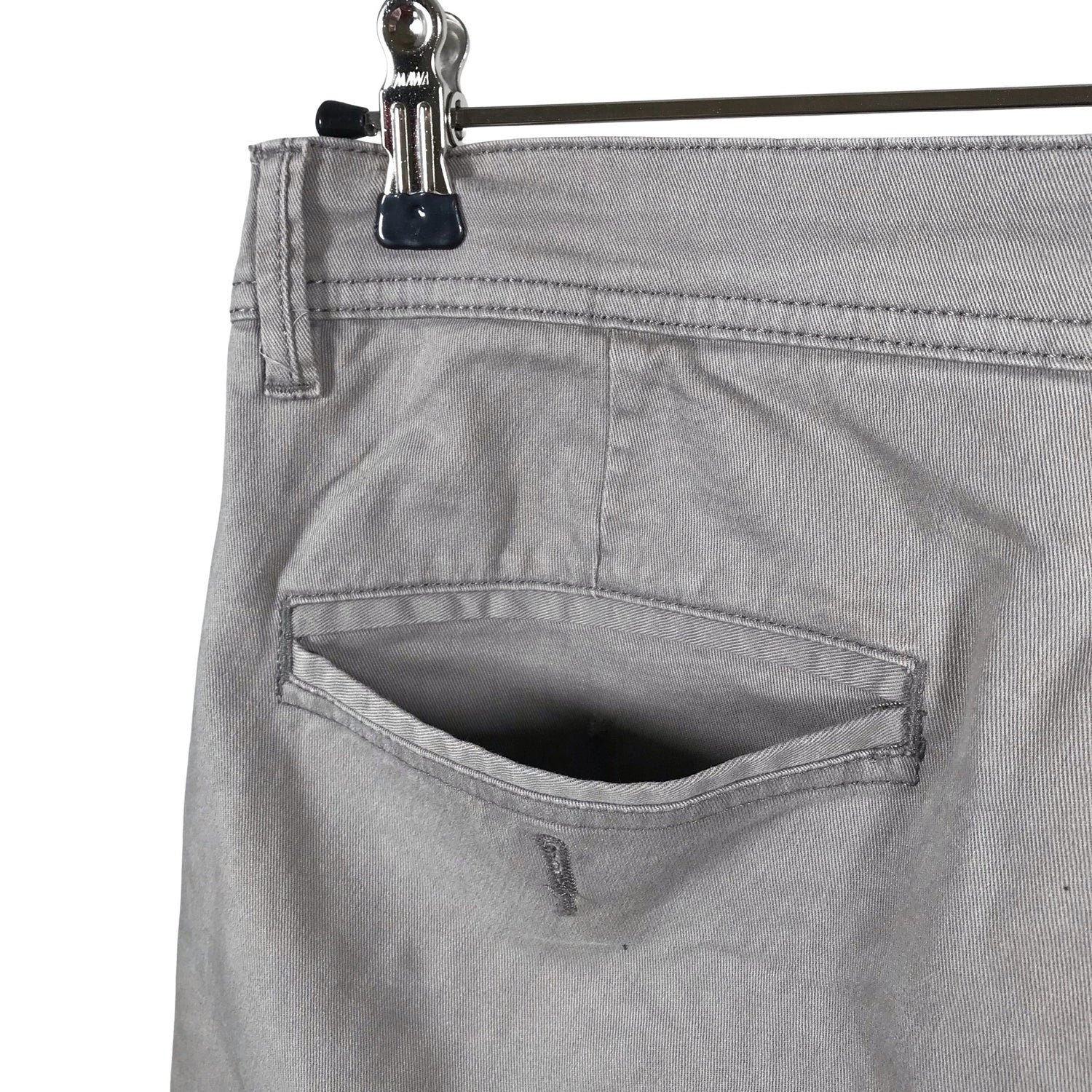 Materiaali ei jousta. Tuotteesta puuttuu nappi, varanappi on mukana. Tuotteen pinnassa on hieman pesu-/käyttökulumaa. Yleisilme on siisti.