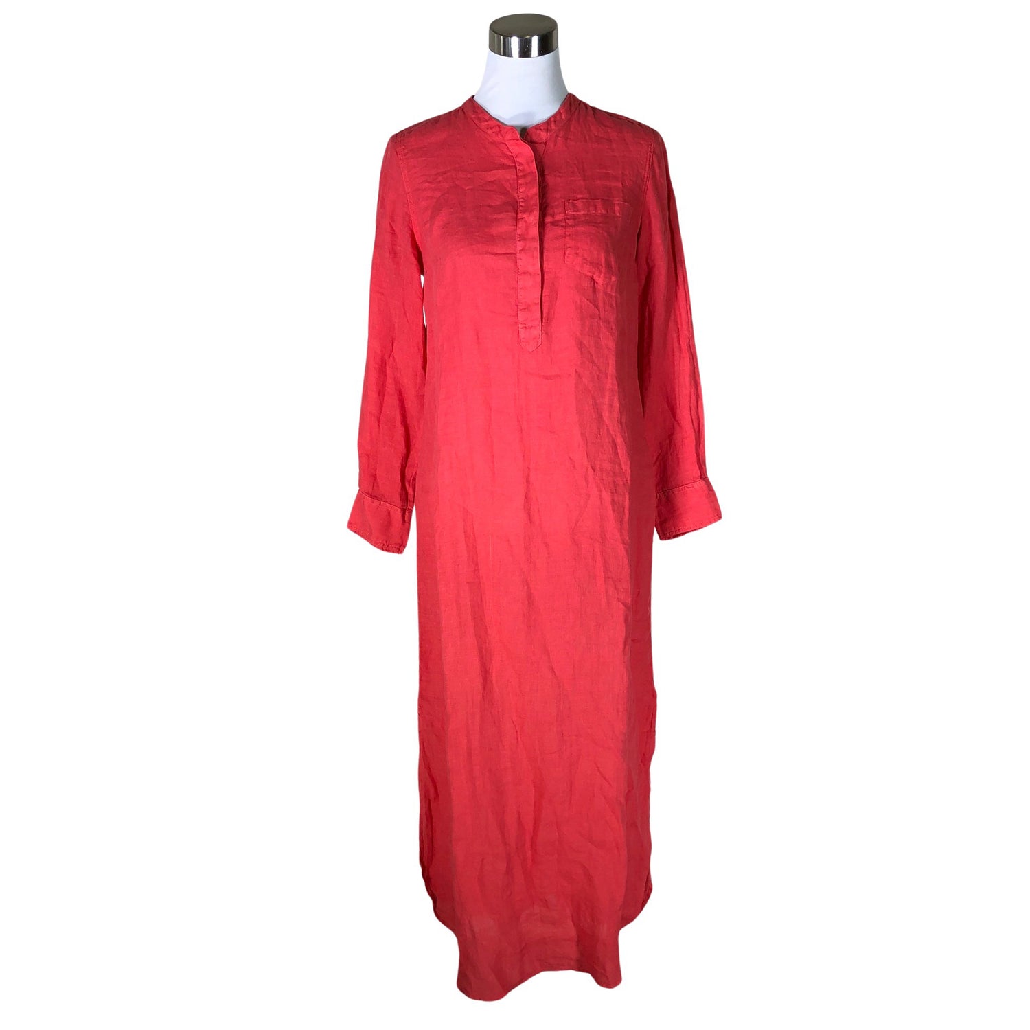 Pitkä malli. Pyöristetty helma. Pellavaa. Tuotteen pinnassa on aavistus pesu-/käyttökulumaa. Yleisilme on siisti.