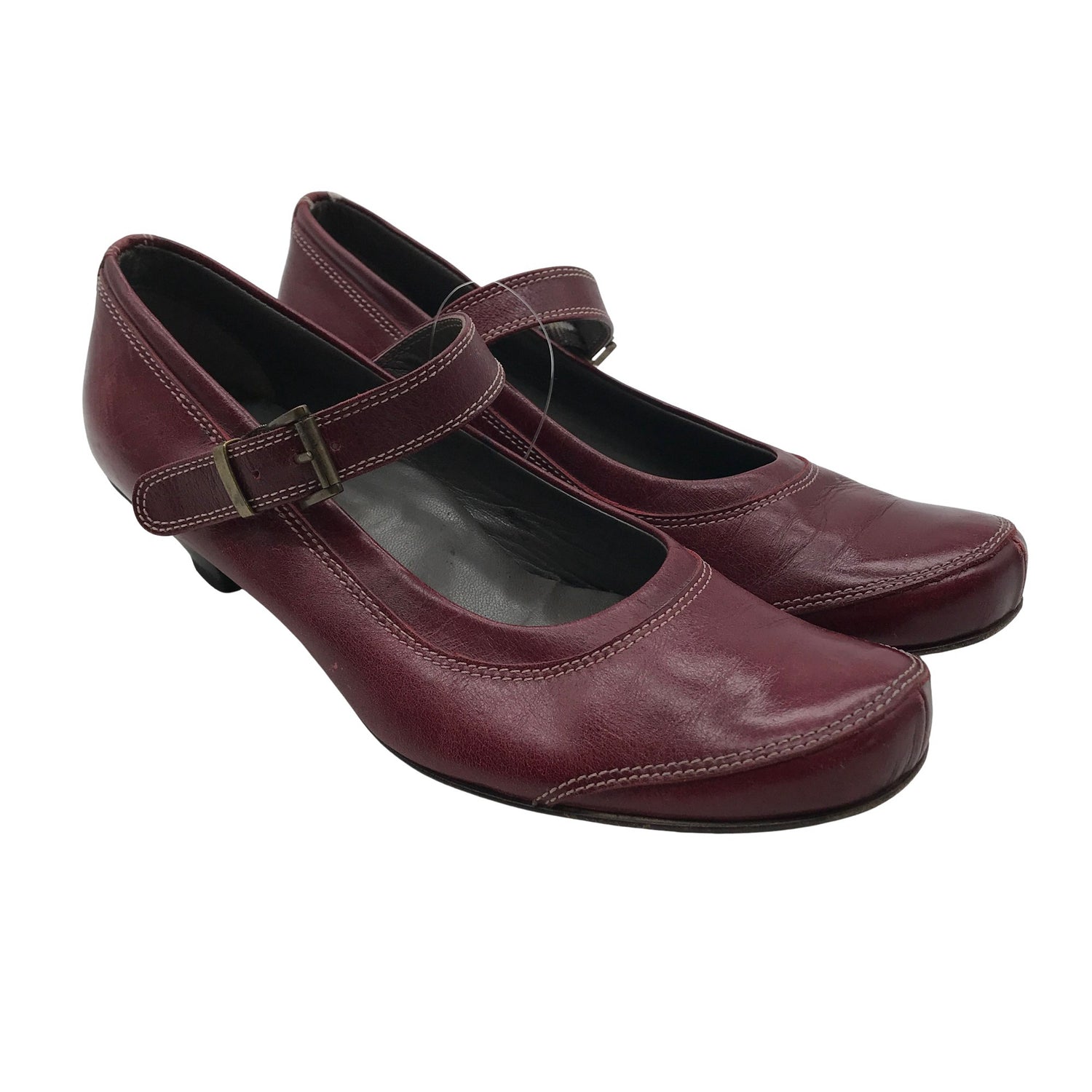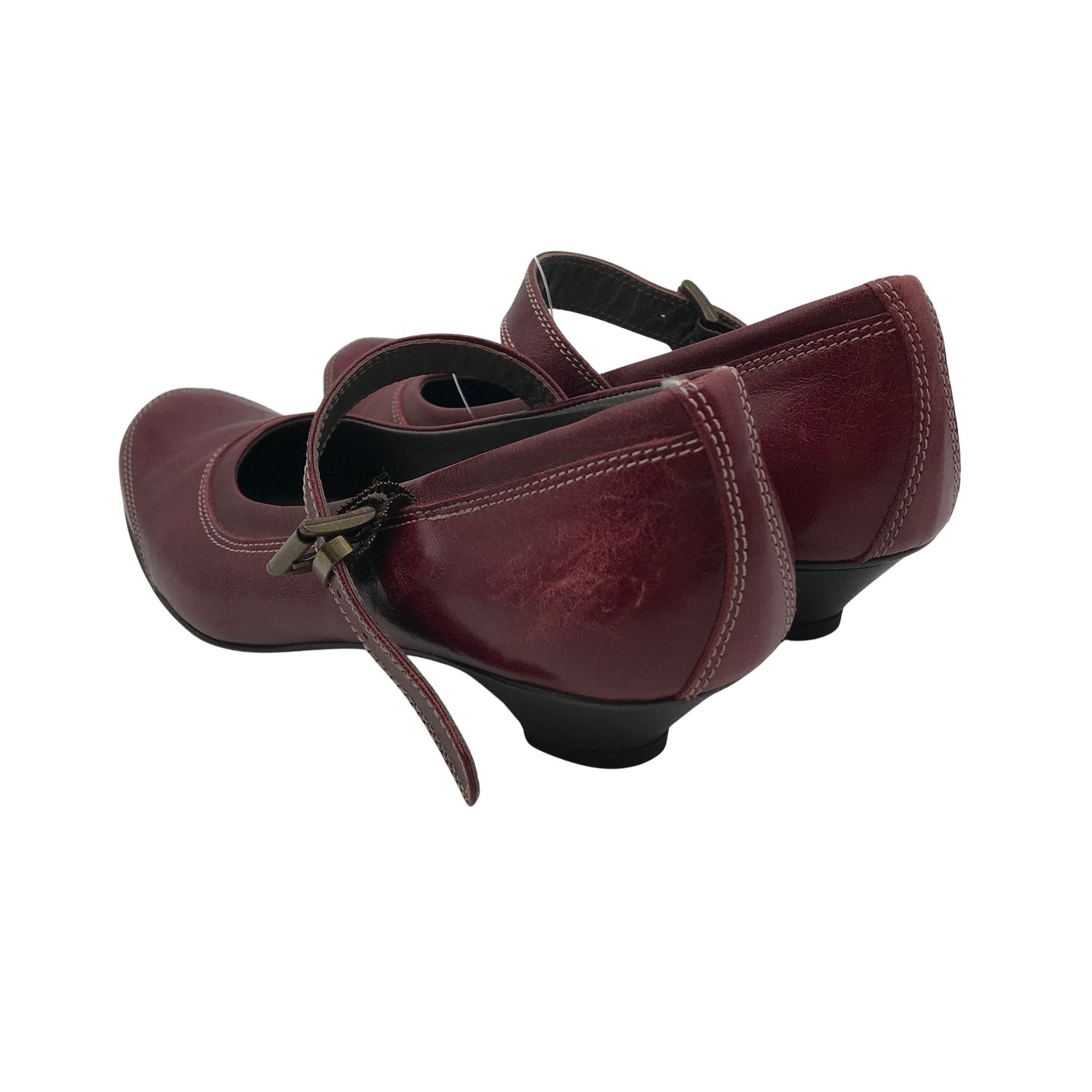 Materiaalitieto puuttuu. Todennäköisesti nahkaa. Solkikiinnitys. Kenkien pohjissa on hieman kulumaa. Yleisilme on siisti.