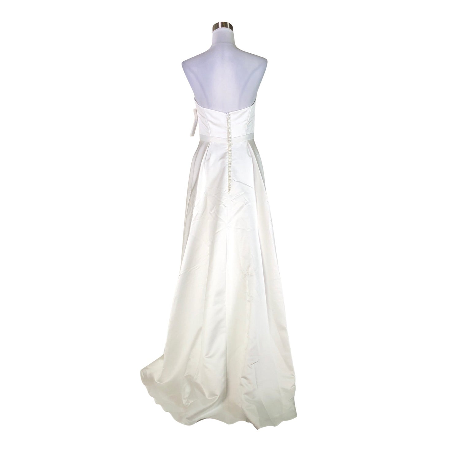 Vetoketju takana. Tuotteessa on ohut vuori. Sh# 1655 €. Suunnittelija: Johanna Lätti. Koristenapit. Hääpuku.