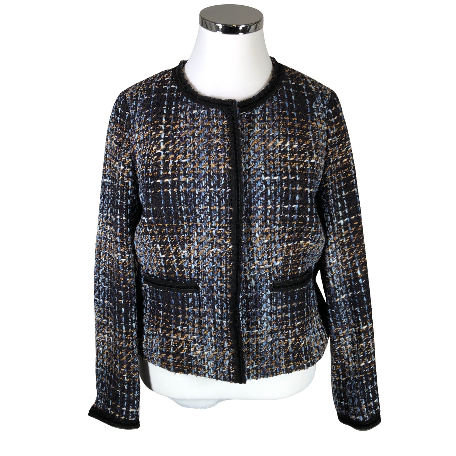 Villasekoitetta. Tuotteessa on ohut vuori. Olkatoppaukset.