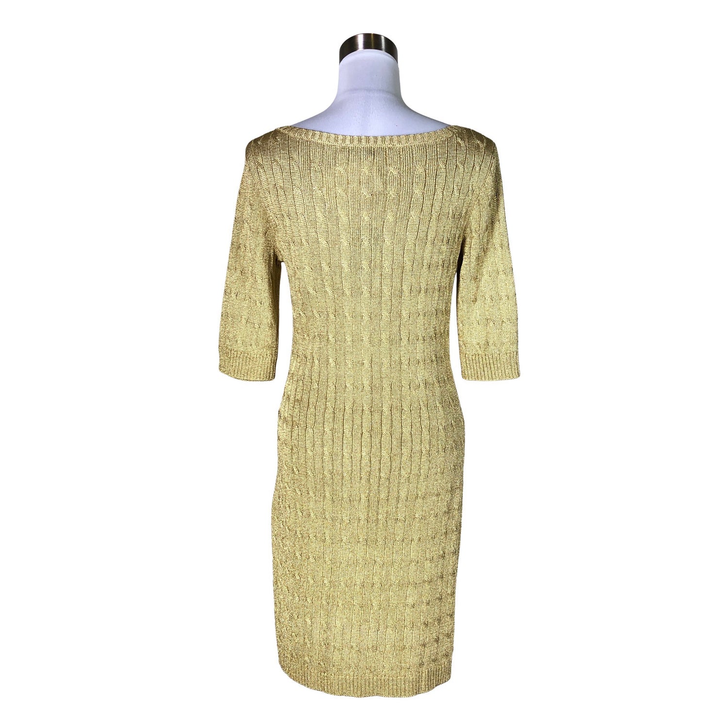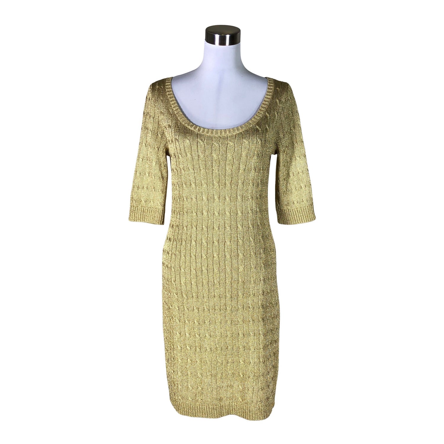 Mallisto: Blac Label. Malli: Elbow Sleeve Ballet Neck Metallic Cables. Vajaamittaiset hihat. Langassa on kiiltoa. Läpikuultavaa materiaalia.