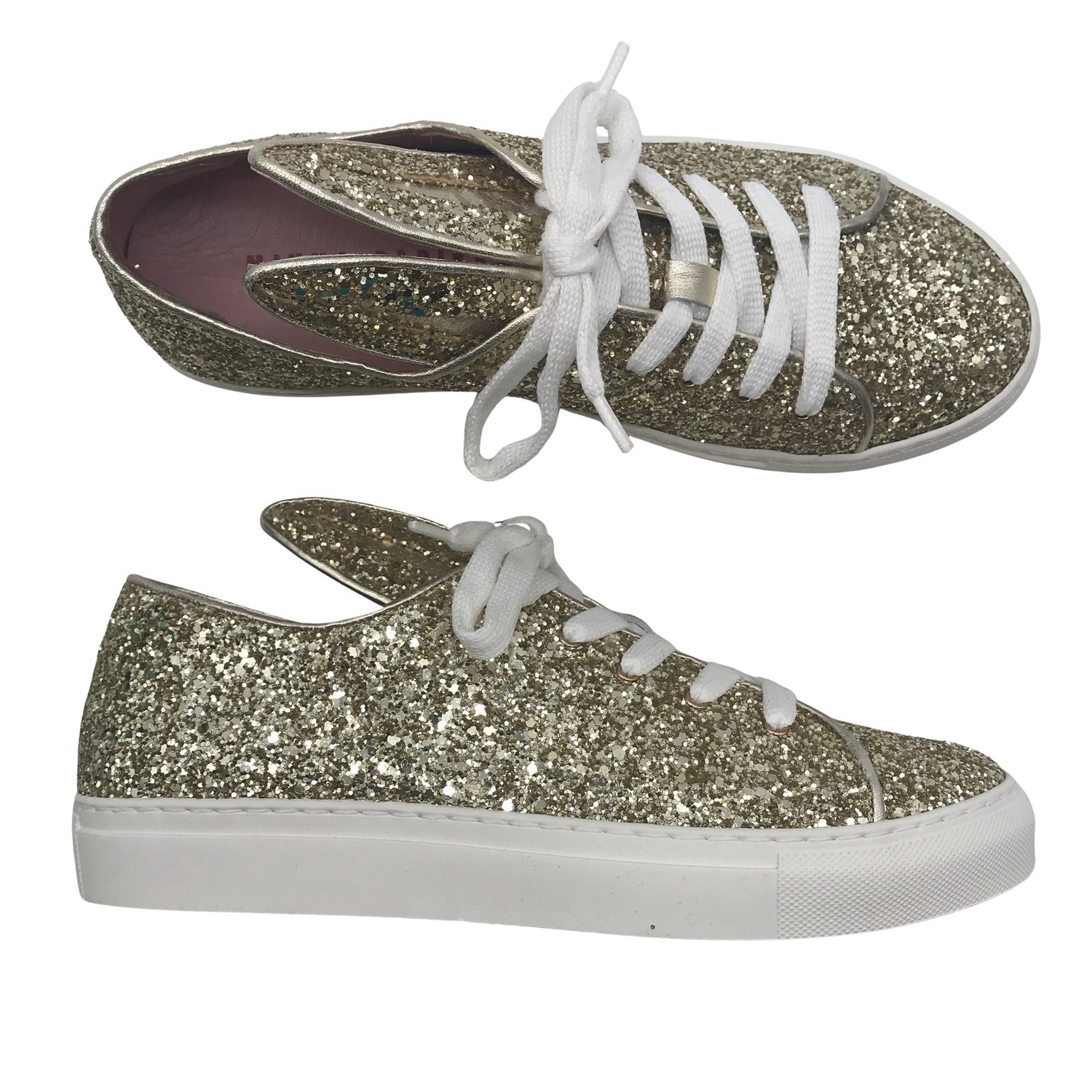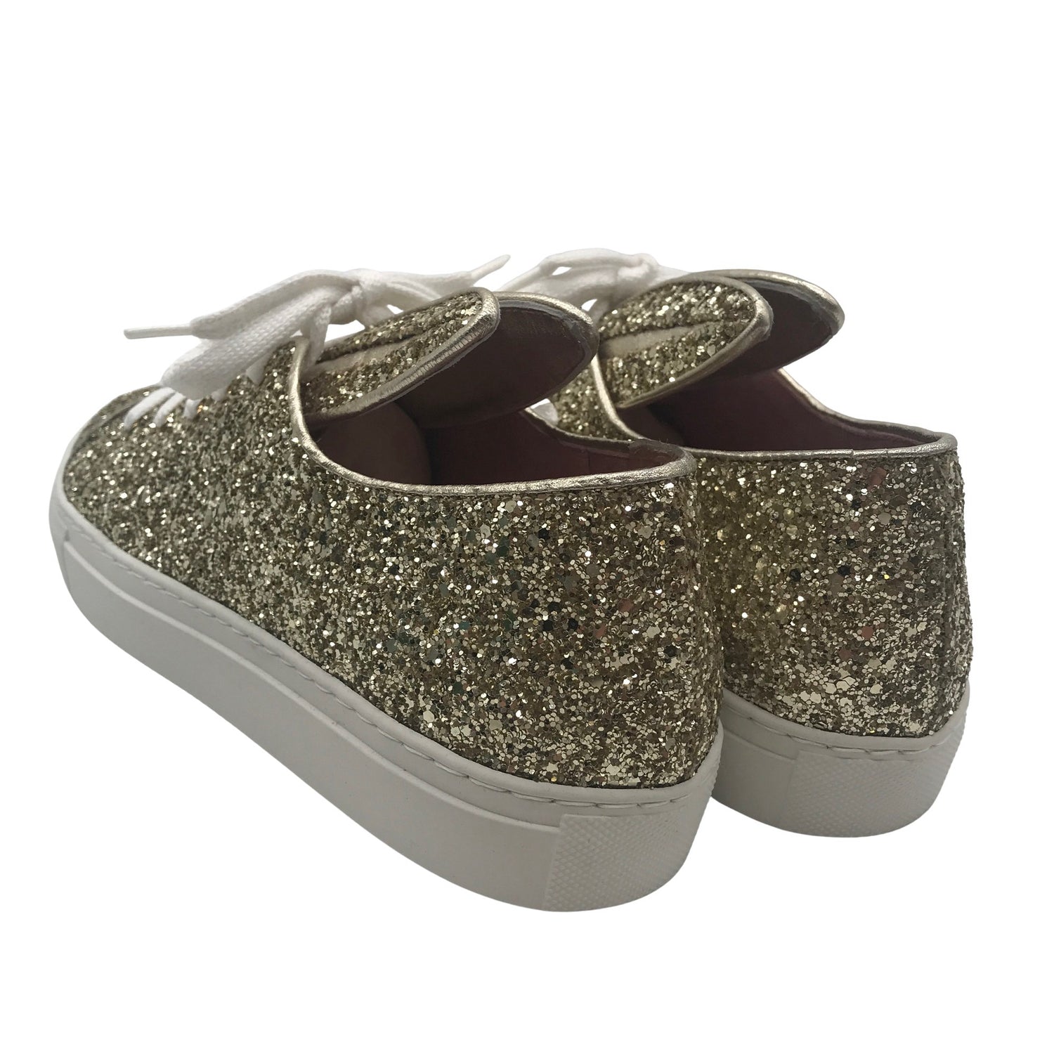 Minna Parikka Tennarit, koko 40. Malli: All Ears Champagne Glitter. Tuotteen pinnassa on kimalletta. Sisäpohja on nahkaa. Mukana alkuperäinen pakkaus.