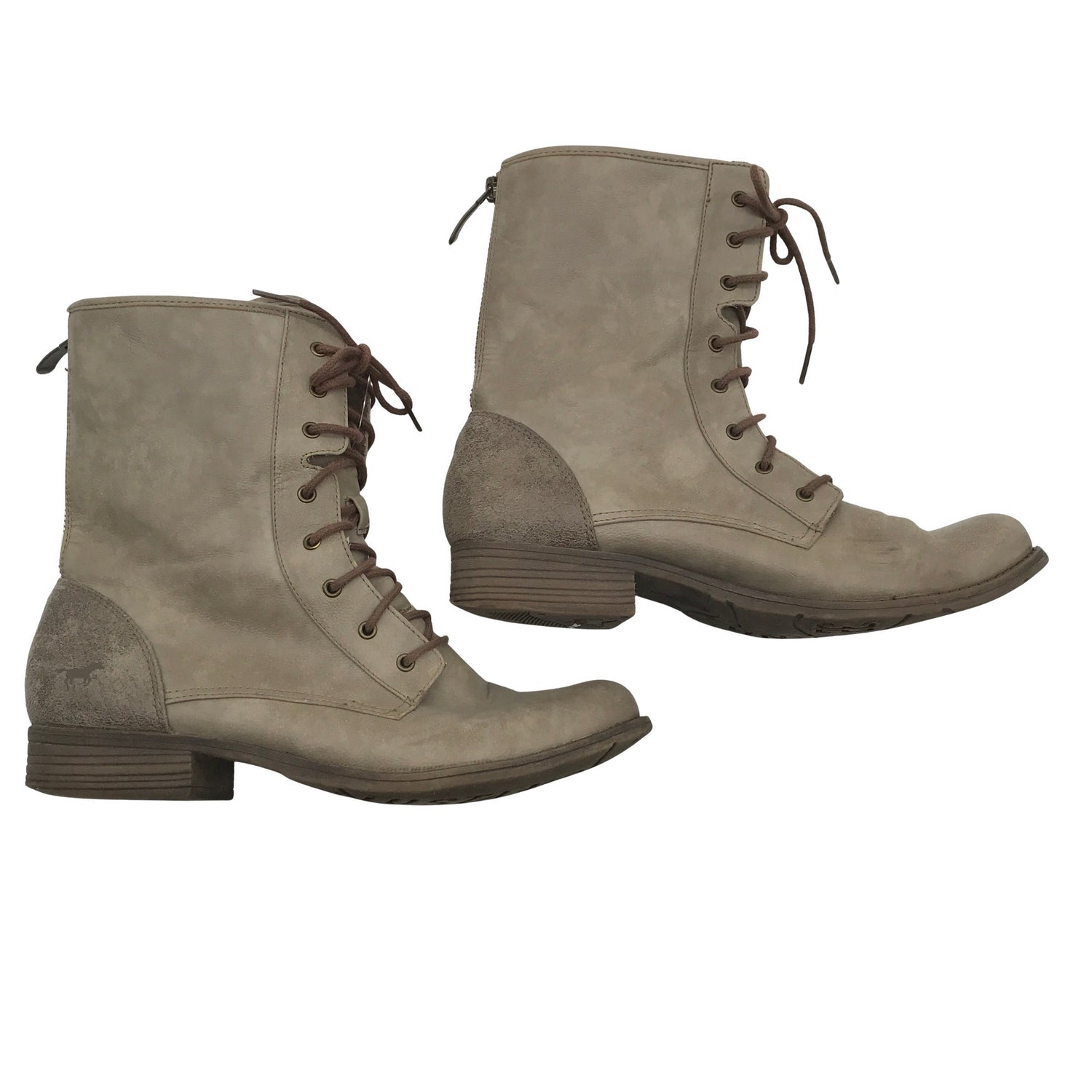Materiaalitieto puuttuu. Todennäköisesti nahkaa. Solmittava malli. Tuotteen pinnassa on aavistus pesu-/käyttökulumaa. Kenkien pohjissa on aavistus kulumaa. Yleisilme on siisti.