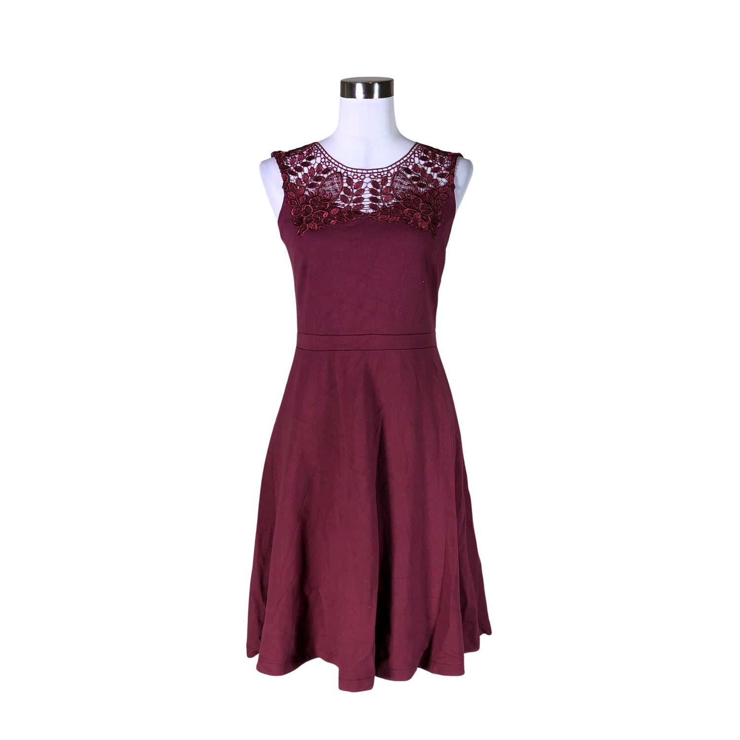 Paksua trikoota. Vetoketju takana. Tuotteessa on pitsisomiste. Tuotteen pinnassa on hieman pesu-/käyttökulumaa. Yleisilme on siisti.