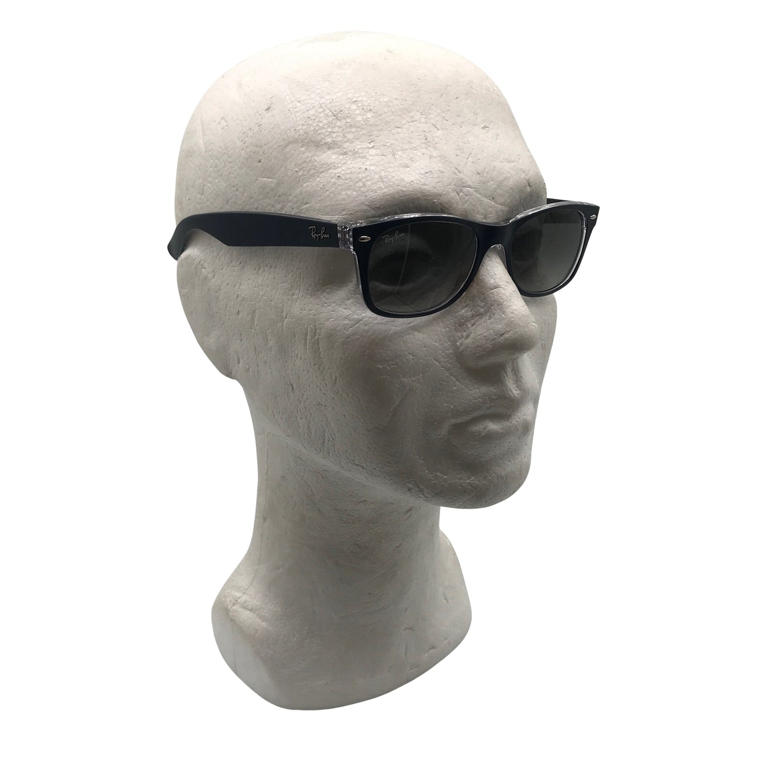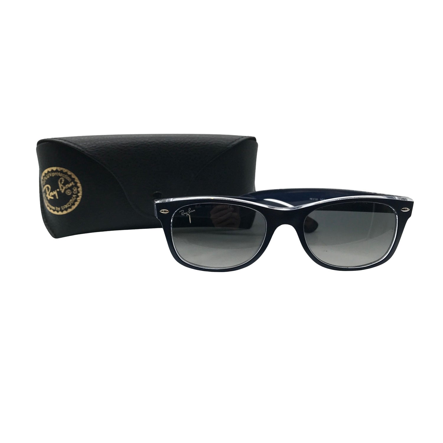 Malli: RB2132 New Wayfarer. Mustat linssit. Omassa kotelossaan. Tuotteen pinnassa on aavistus pesu-/käyttökulumaa. Yleisilme on siisti.
