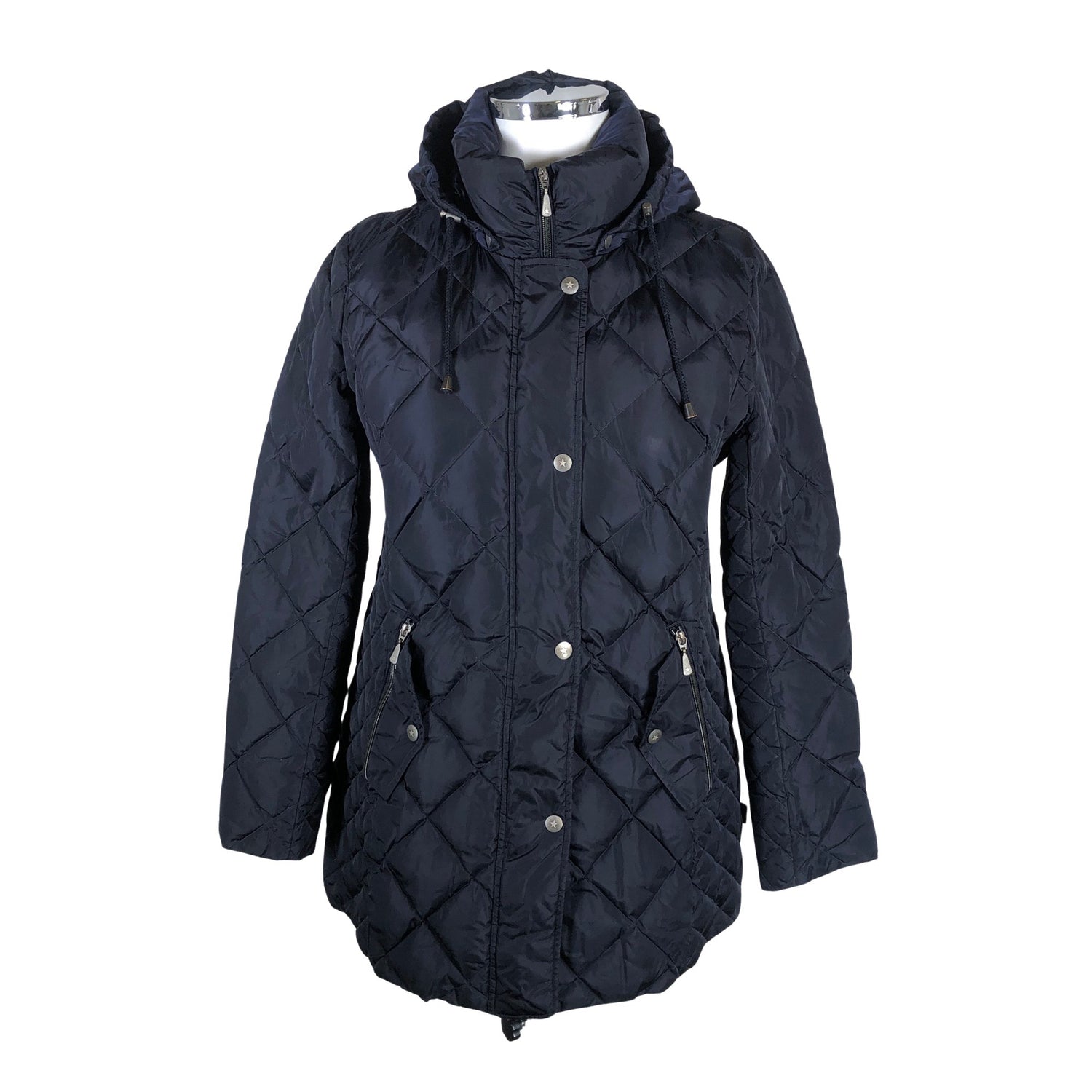 Irrotettava huppu. Untuvaa. Tuotteessa on kiristysnyöri helmassa. Tuotteen pinnassa on hieman pesu-/käyttökulumaa. Tuote on muilta osin hyvässä kunnossa.