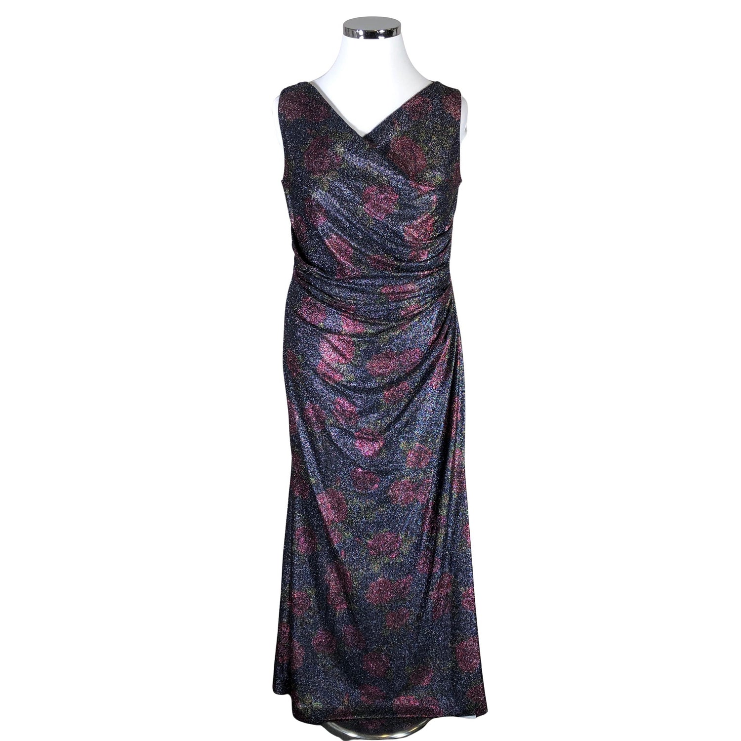 Sh# 220 £. Tyköistuva malli. Materiaali on hyvin joustavaa. Trikoovuori. Tuotteen pinnassa on kimalletta. Vetoketju takana. Tuotteen pinnassa on langannousu/langankiristymä. Tuote on muilta osin uudenveroisessa kunnossa.