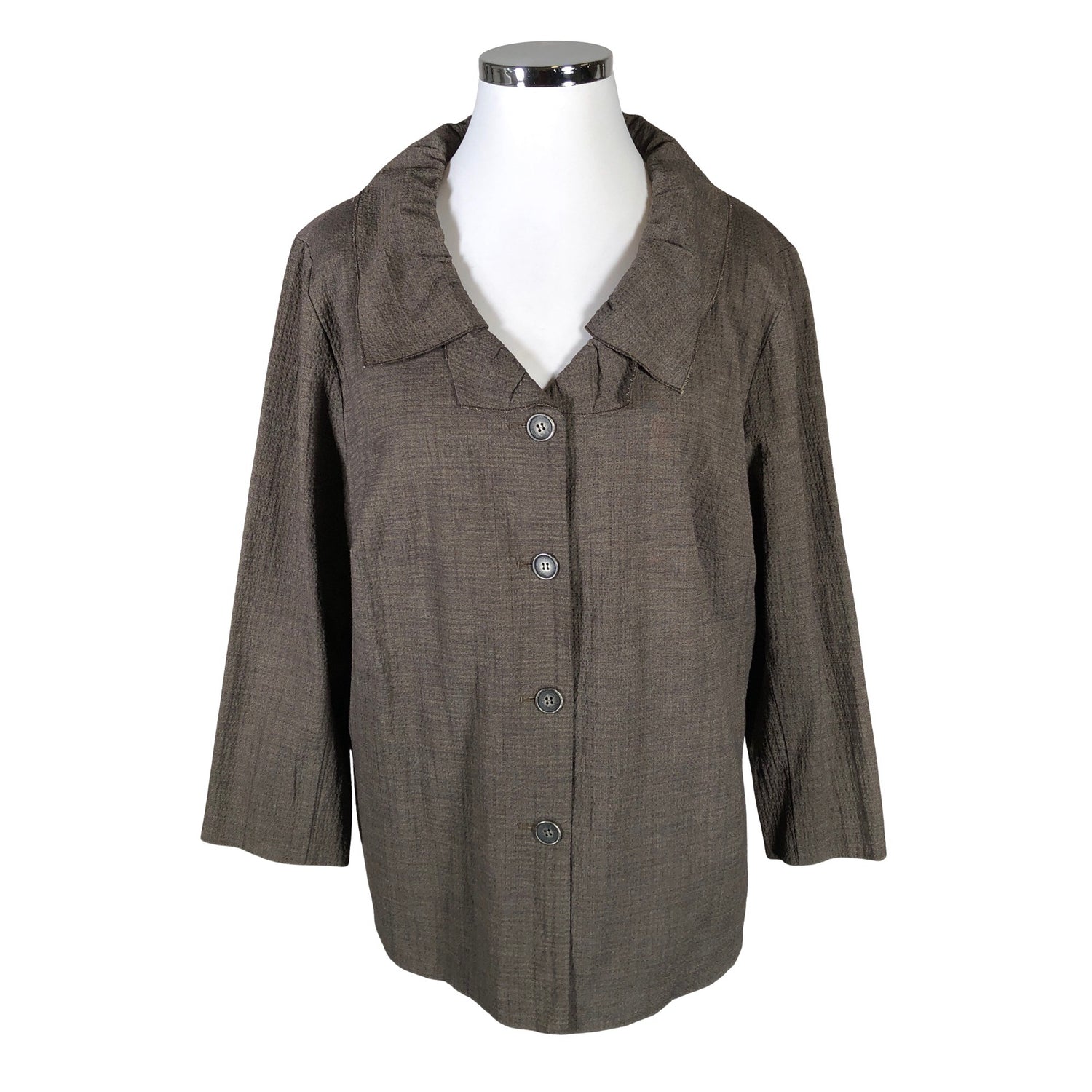 Olkatoppaukset. Tuotteessa ei ole vuorta. Tuotteessa on viimeistelemättömät reunat.