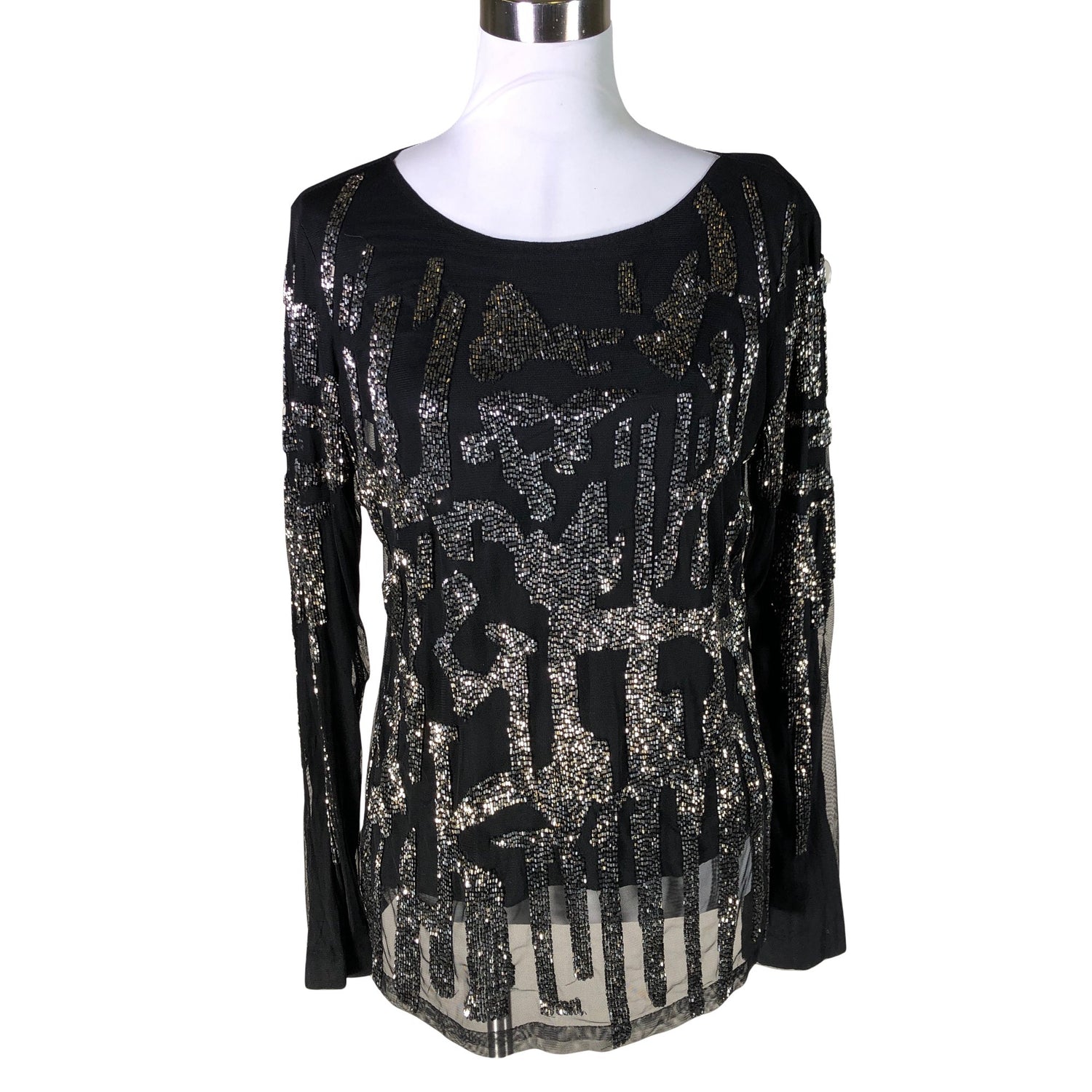 Mesh-kangasta. Paljetteja puuttuu. Tuote on muilta osin hyvässä kunnossa.