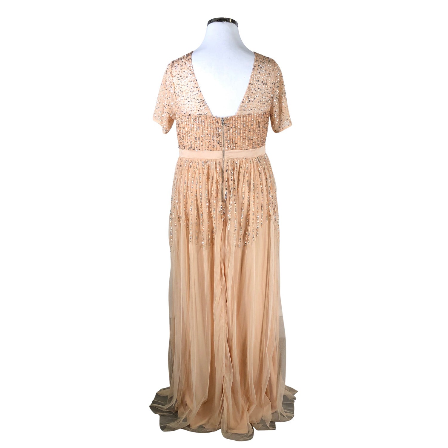 Väri: persikka. Materiaali ei jousta. Vetoketju takana.