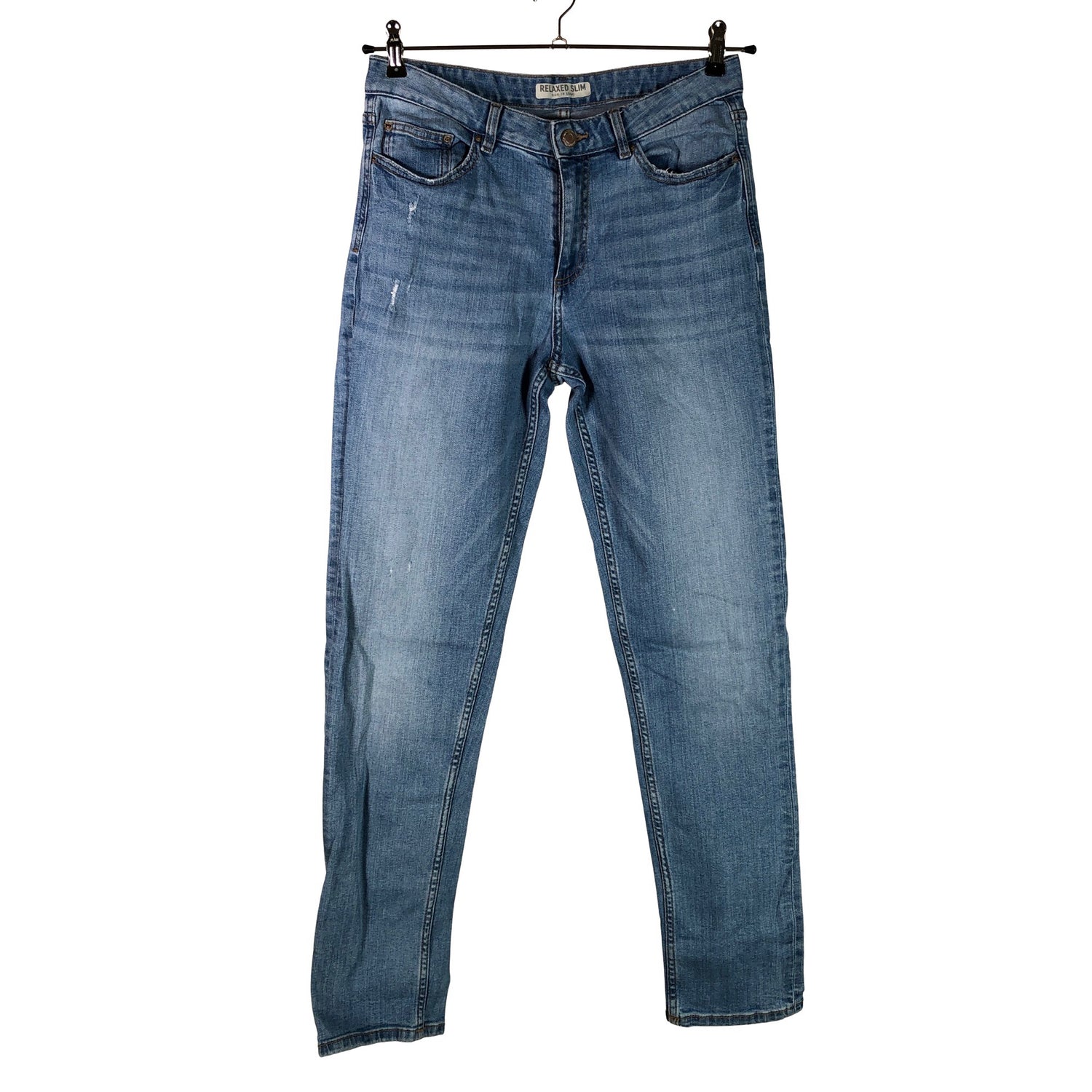 Kulutettu kuosi. Materiaali joustaa. Malli: Relaxed slim.