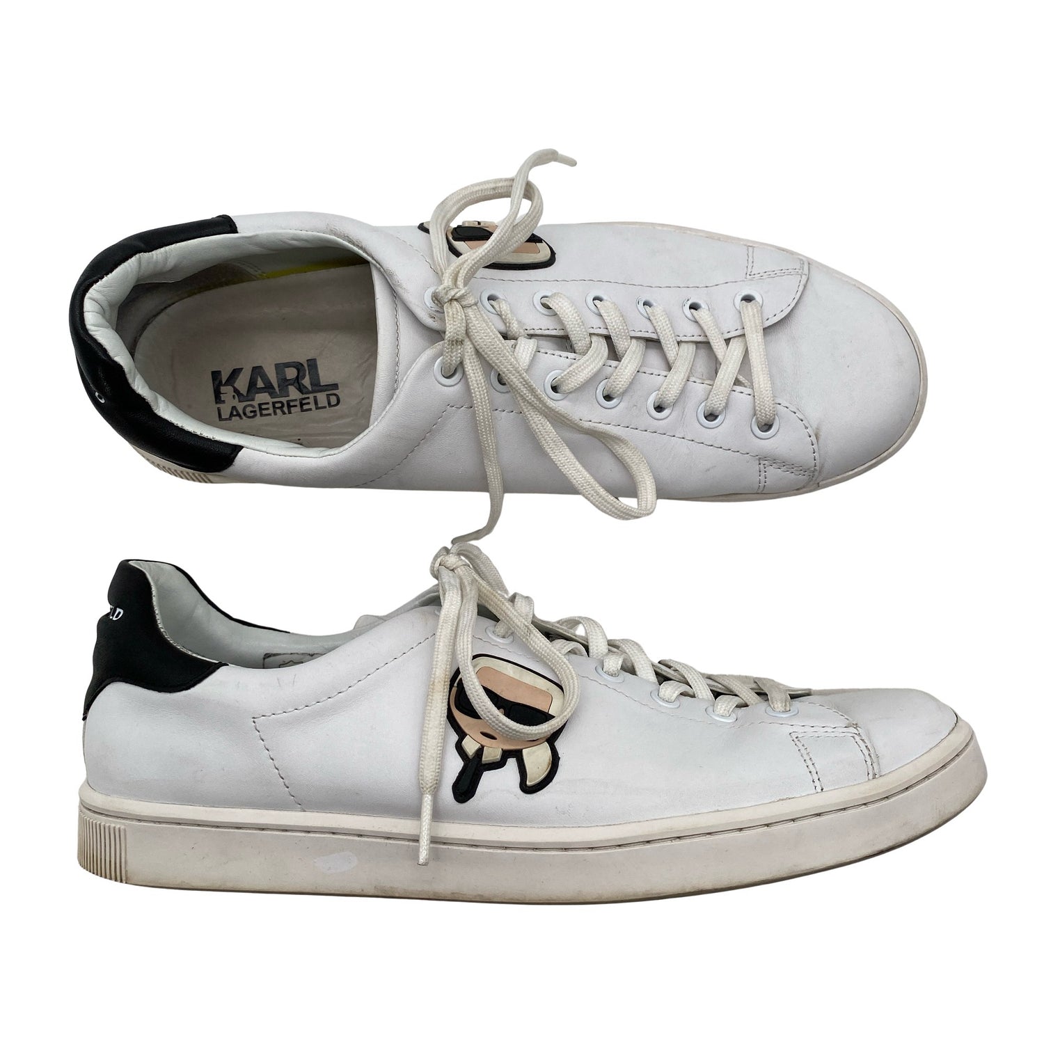 Karl Lagerfeld Tennarit, koko 43. Nahkaa. Solmittava malli. Tuotteen pinnassa on hieman pesu-/käyttökulumaa. Tuotteen sisäpuolella on hieman tummentumaa. Yleisilme on siisti.
