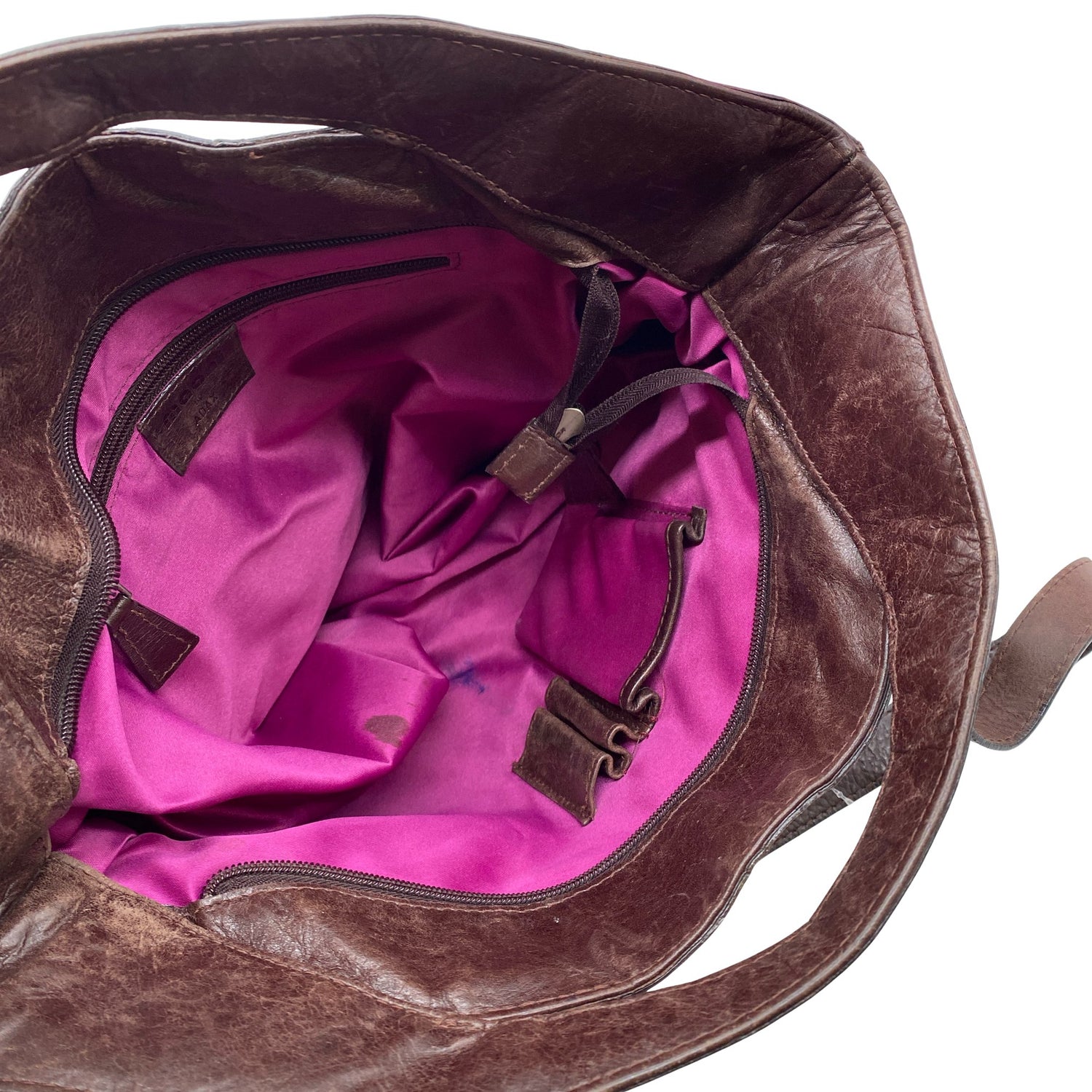 Mallisto: Maani x Adax. Materiaalitieto puuttuu. Todennäköisesti nahkaa. Tuotteen sisäpuolella on muutama haalea tahra. Laukun kulmissa on kulumaa. Tuotteen pinnassa on hieman pesu-/käyttökulumaa. Yleisilme on siisti.