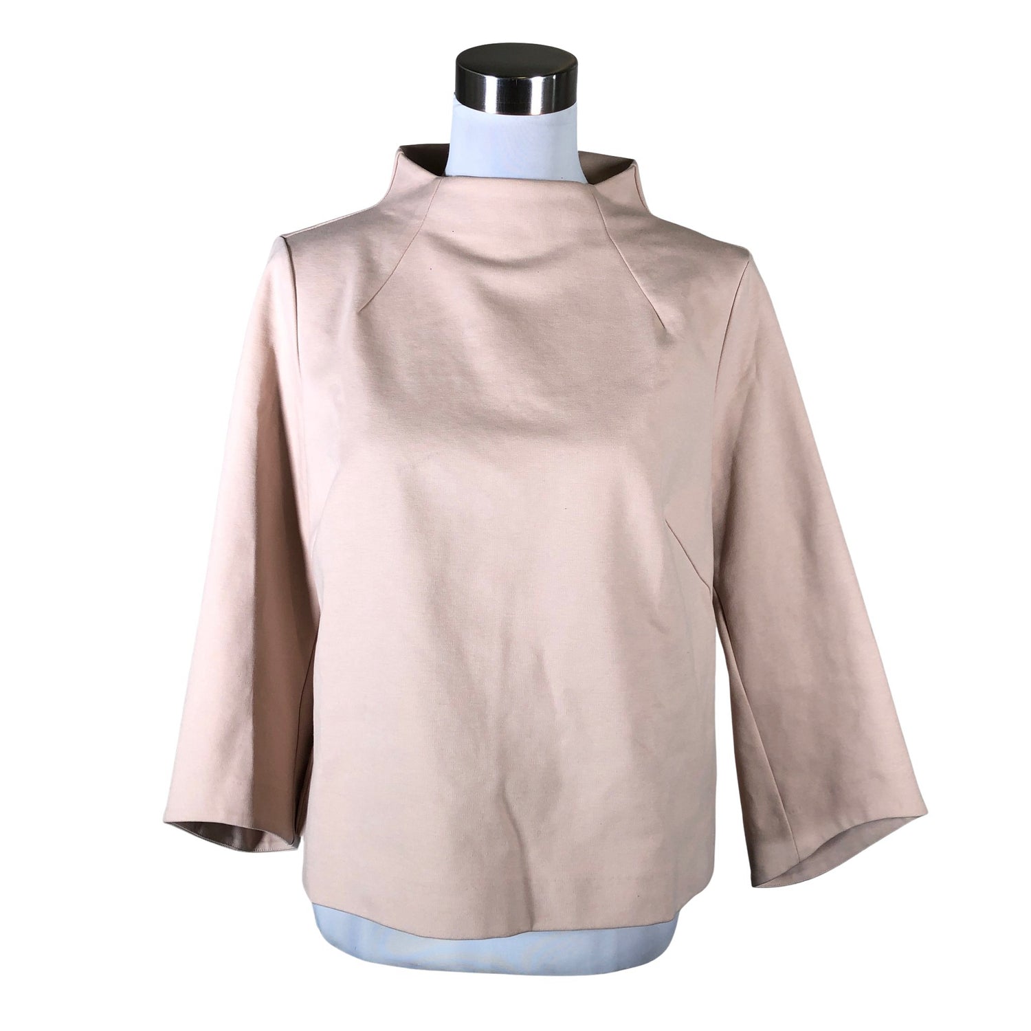 Paksua trikoota. Tuotteen pinnassa on haalea tahra. Kauluksen sisäpuolella on aavistus tummentumaa. Tuotteen pinnassa on aavistus pesu-/käyttökulumaa. Yleisilme on siisti.