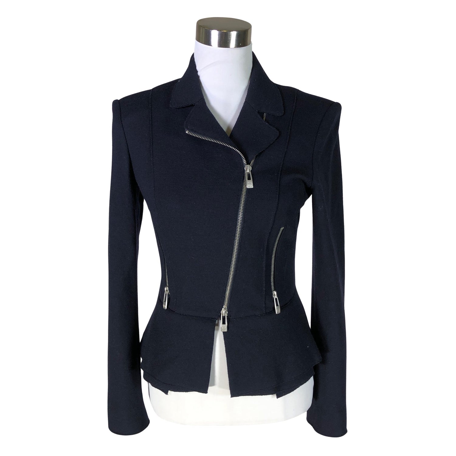 Tuotteessa on viimeistelemättömät reunat. Neulosta. Sopii sisä- ja ulkokäyttöön. Deodorantin tahraa aavistus kainaloissa.
