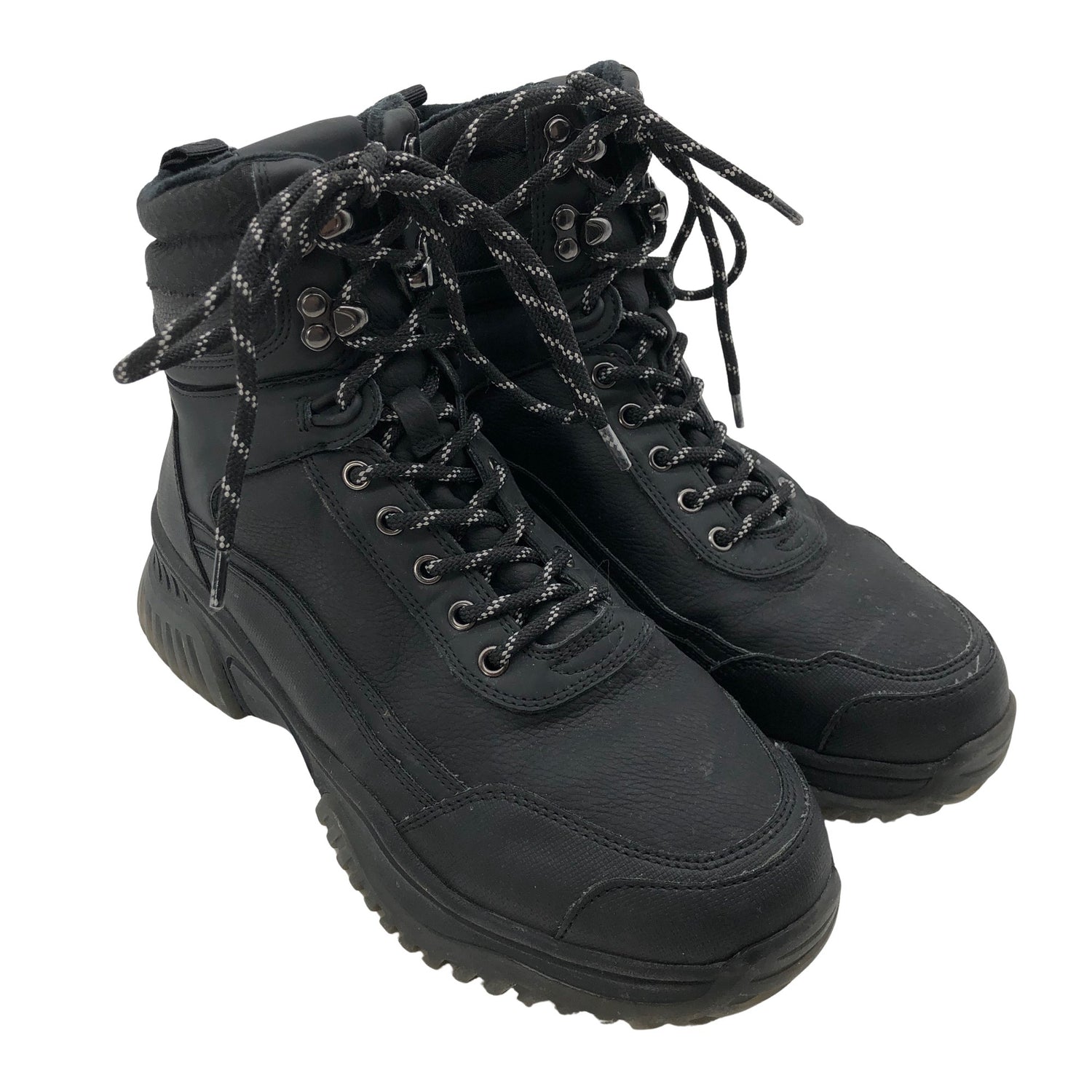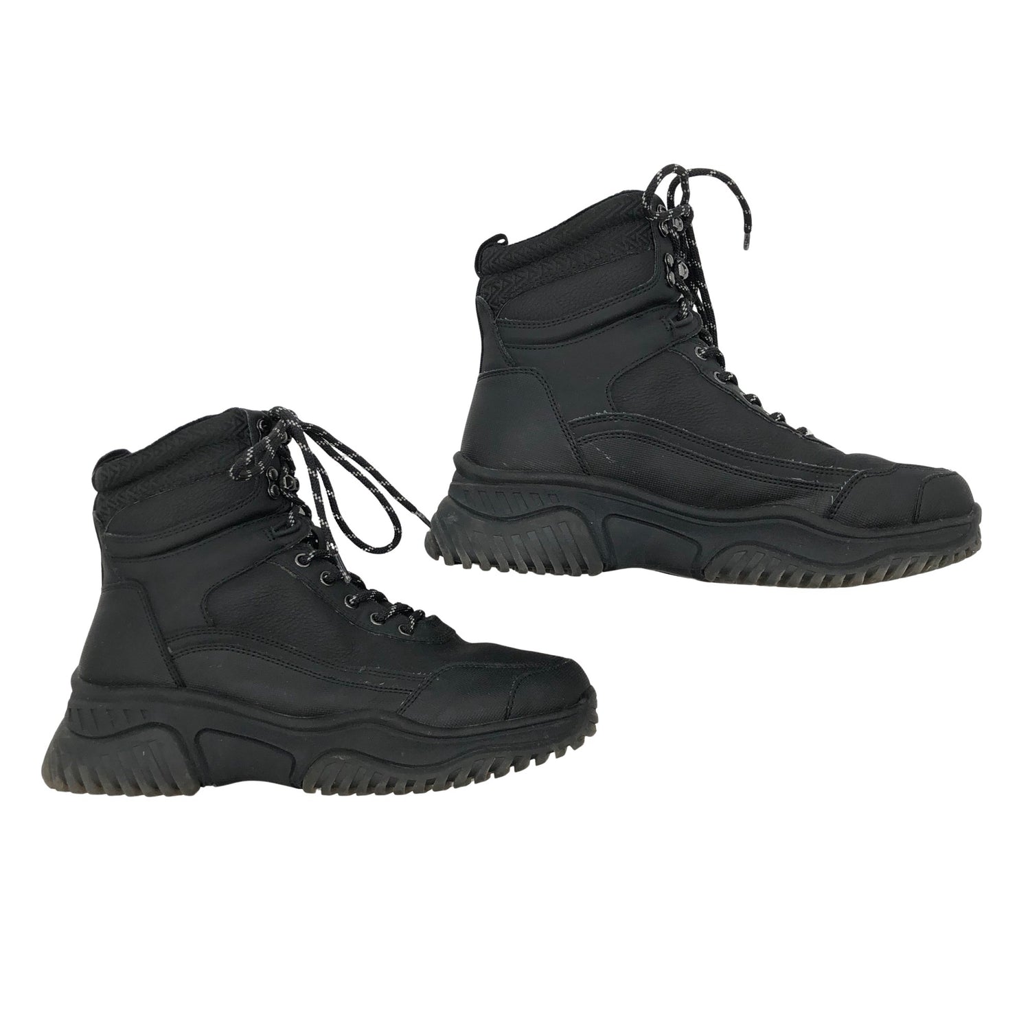 Keinonahkaa. Sivusaumoissa on vetoketjut. Tuotteen pinnassa on aavistus käyttölikaa. Tuotteen pinnassa on hieman pesu-/käyttökulumaa. Yleisilme on siisti.