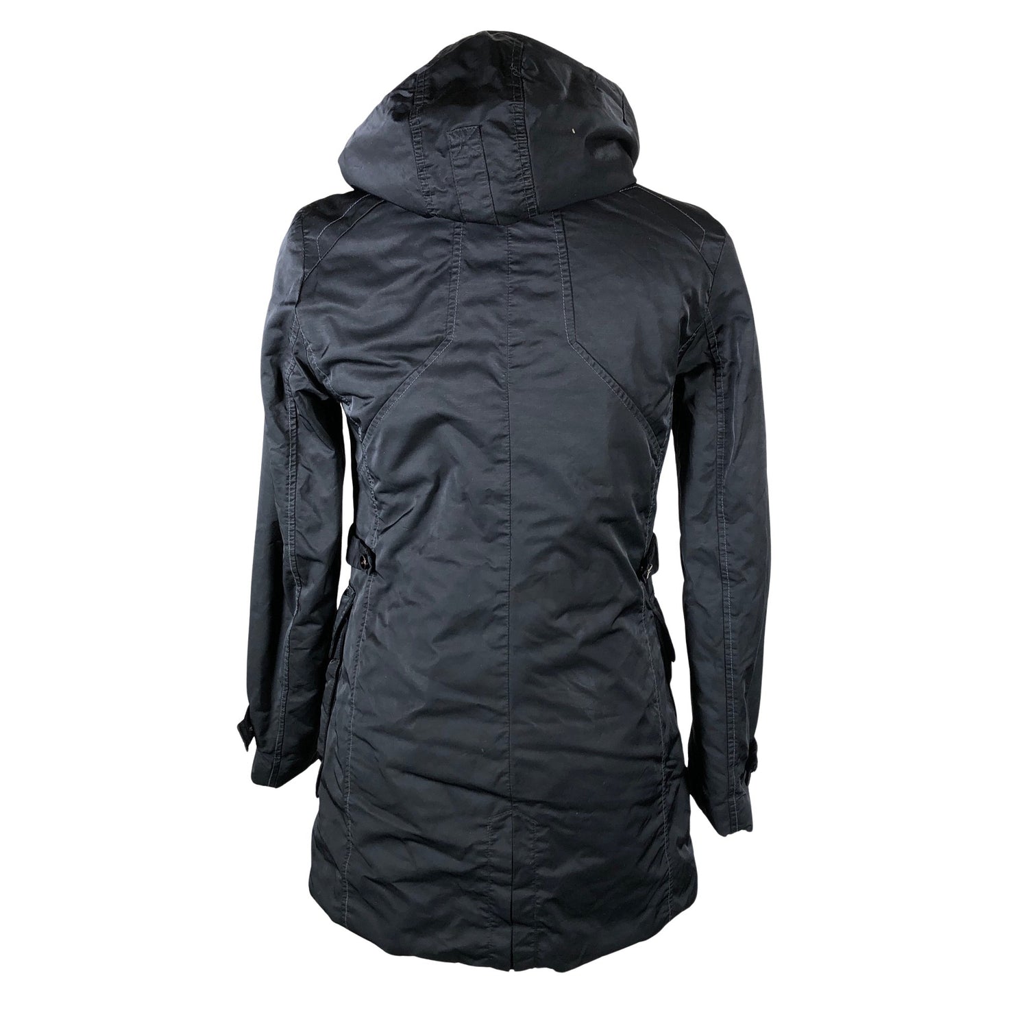 Irrotettava huppu. Tuotteen pinnassa on hieman pesu-/käyttökulumaa. Irtokarvoja sisäpuolella. Tuotteen sisäpuolella on aavistus kulumaa. Yleisilme on siisti.