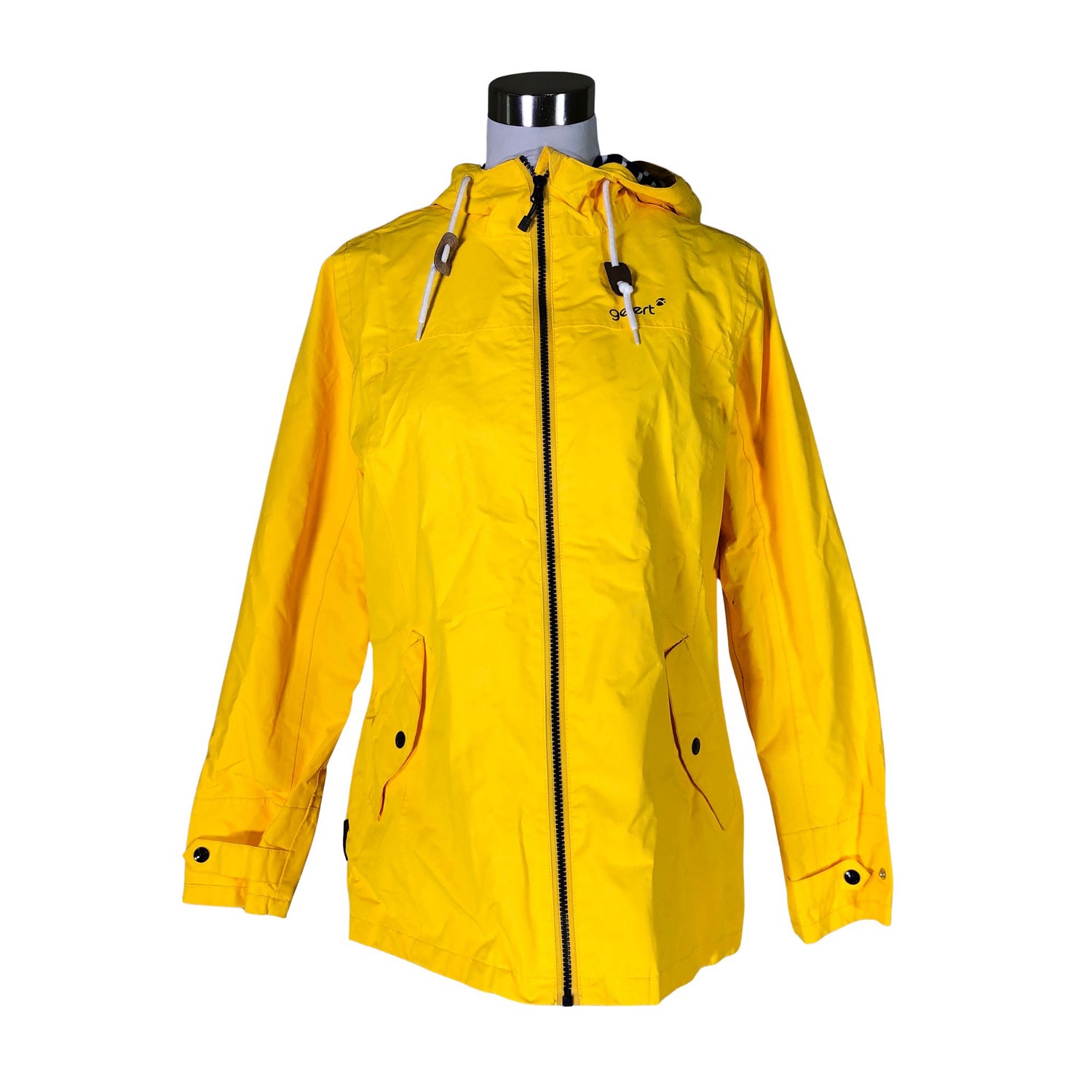 Tuotteessa on ohut vuori. Teipatut saumat. Kirkas väri. Tuotteen pinnassa on muutama tahra. Katso lisäkuvat. Tuote vaatii pesun. Tuotteen pinnassa on aavistus pesu-/käyttökulumaa. Tuote on muilta osin hyvässä kunnossa.