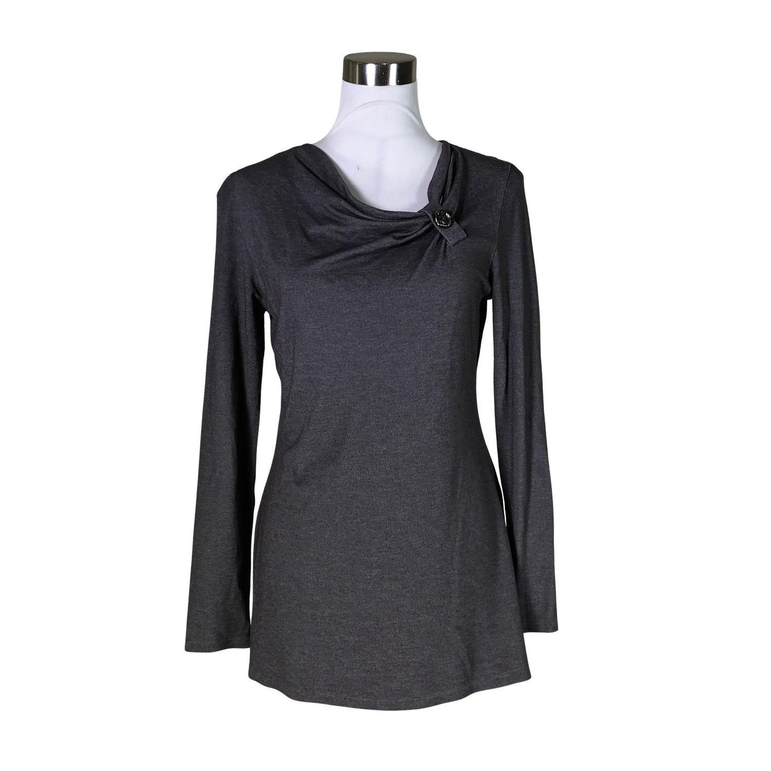 Epäsymmetrinen leikkaus. Materiaali joustaa. Tuotteen pinnassa on hieman pesu-/käyttökulumaa. Yleisilme on siisti.