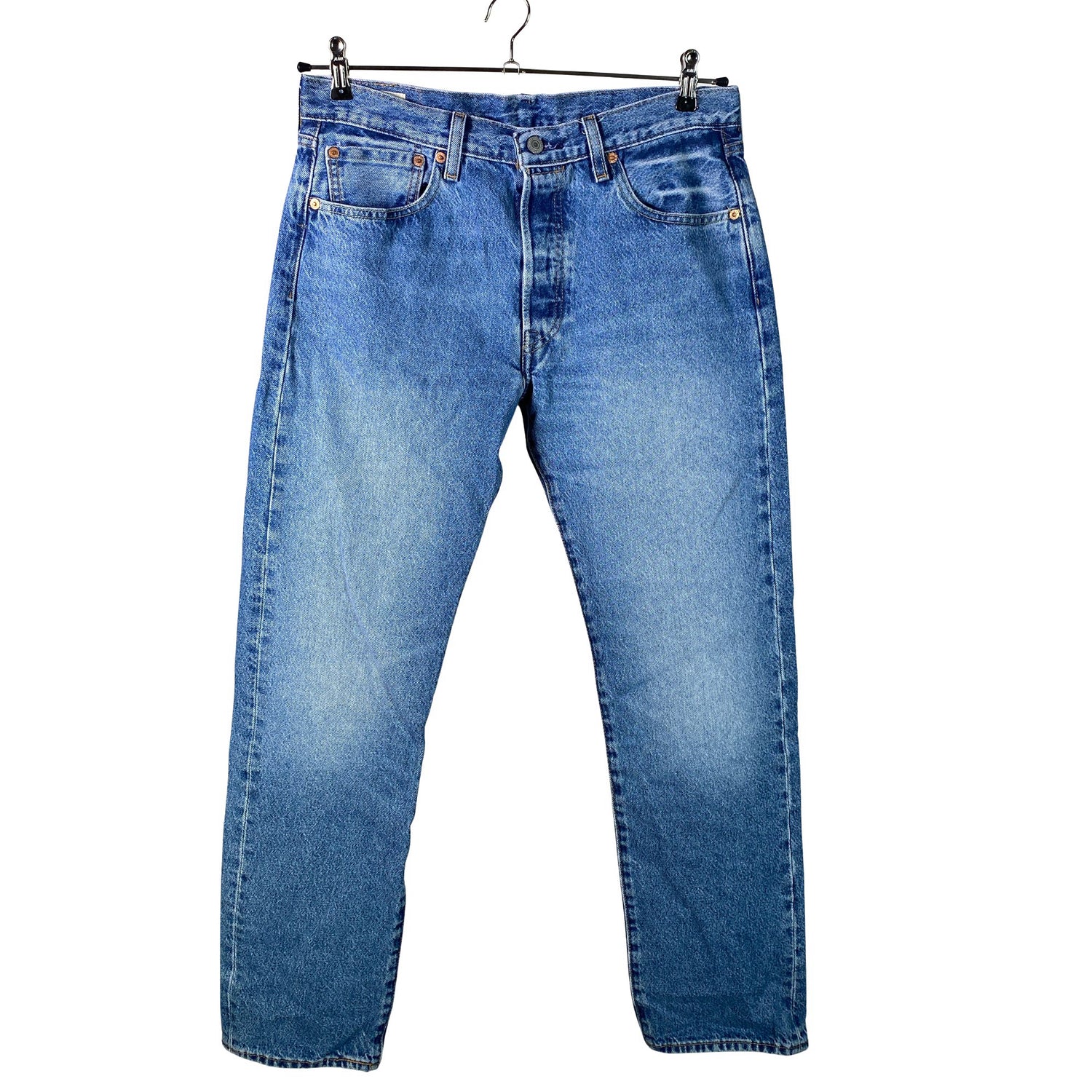 Malli: 501. Tuotteen pinnassa on aavistus pesu-/käyttökulumaa. Yleisilme on siisti.