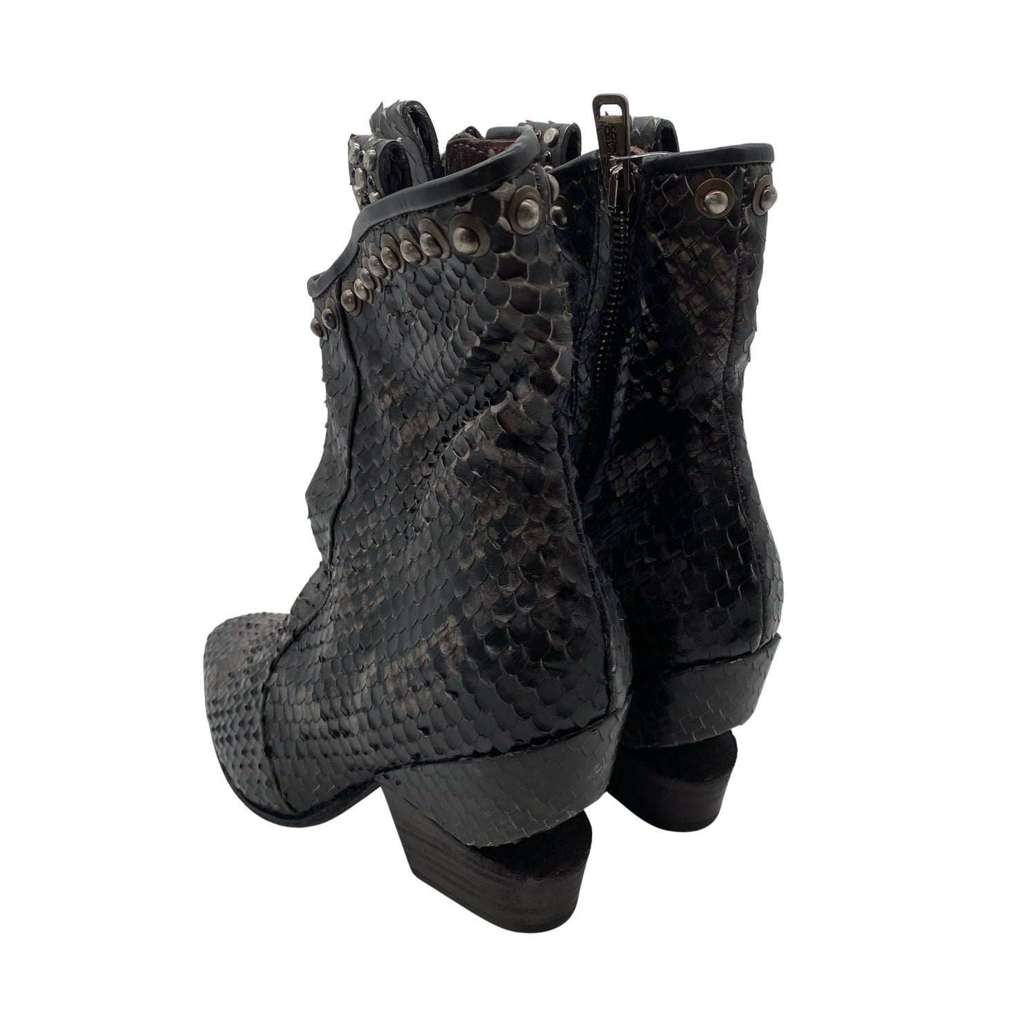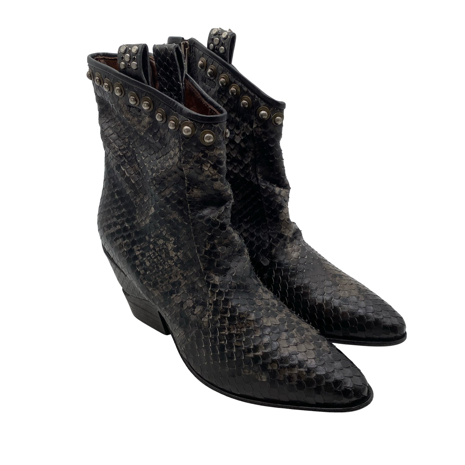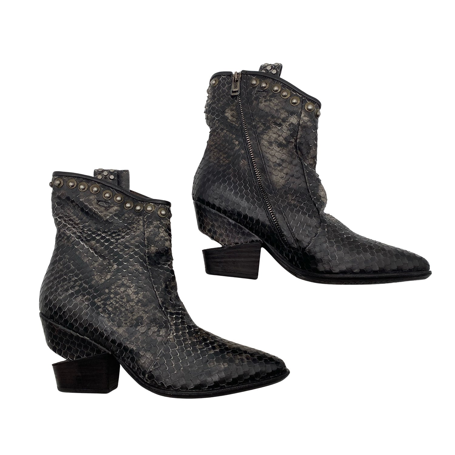 Materiaalitieto puuttuu. Todennäköisesti nahkaa. Sivusaumassa on vetoketju.