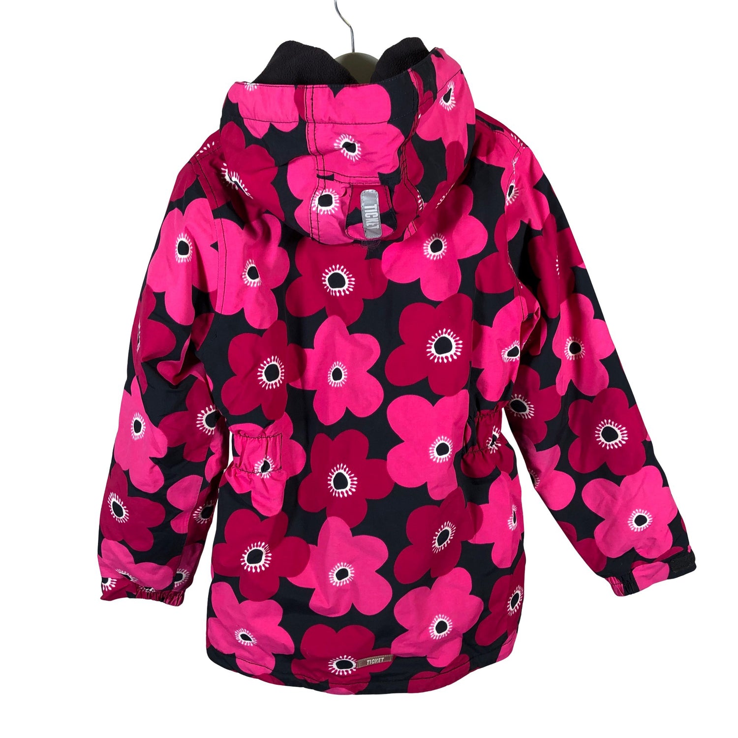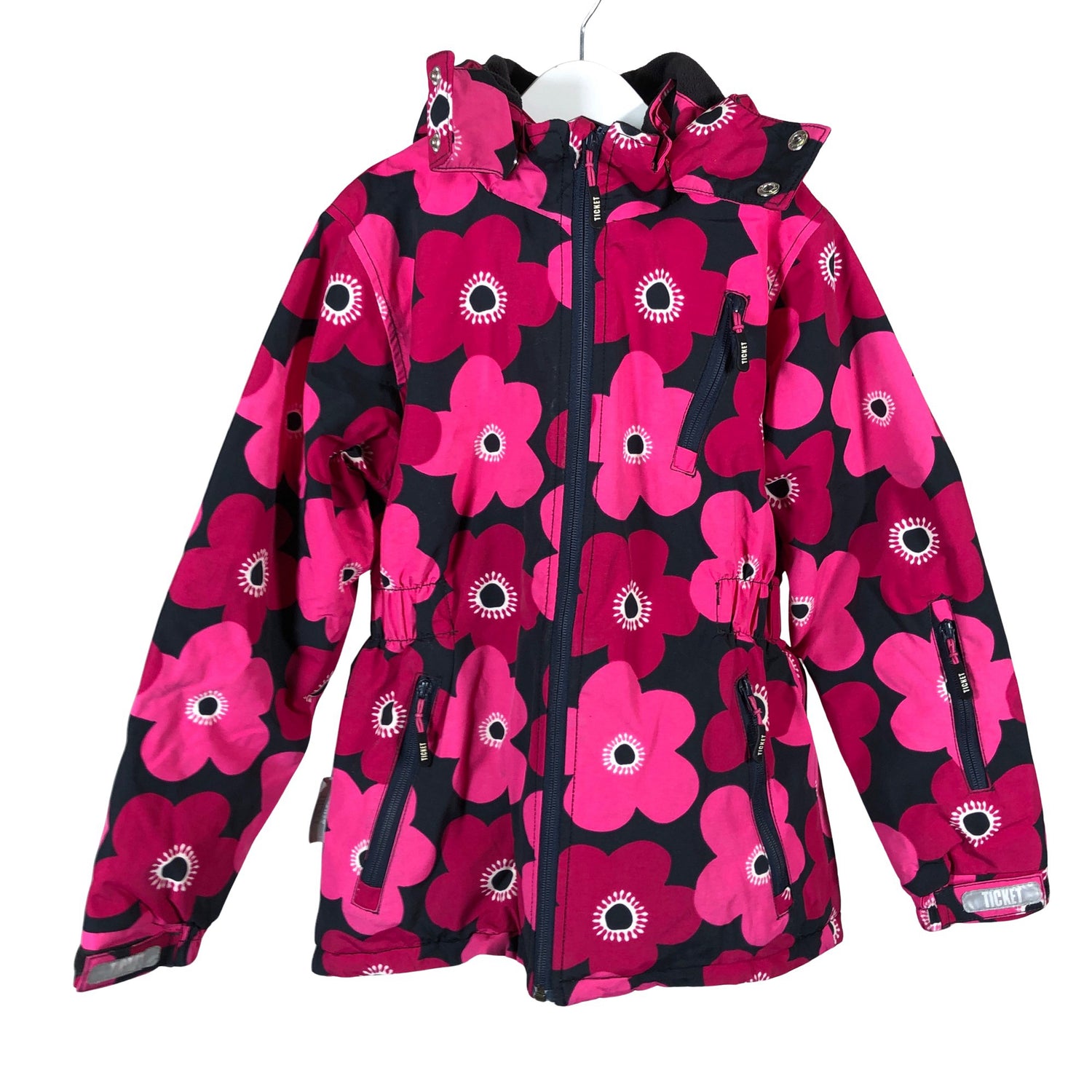 Teipatut saumat. Irrotettava huppu. Tuotteen pinnassa on muutama tahra. Tuotteen pinnassa on aavistus tummentumaa. Kauluksessa on aavistus kulumaa. Yleisilme on siisti.