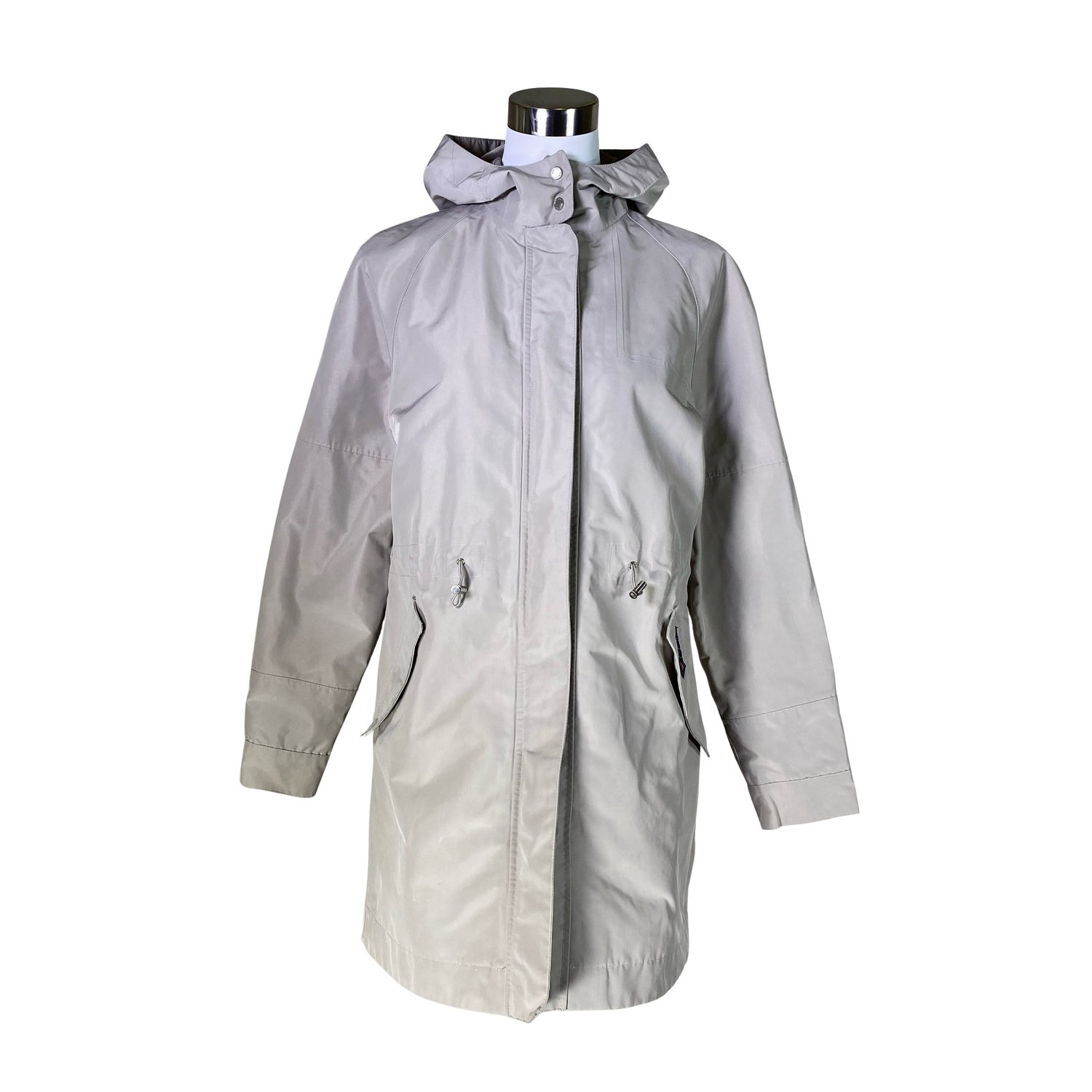 Tuotteessa on merkintä: All weather protection. Teipatut saumat. Windproof -merkintä. Water repellent -merkintä. Breathable -merkintä. Tuotteessa on ohut vuori. Kiristysnauha vyötäröllä. Tuotteen pinnassa on hieman pesu-/käyttökulumaa. Tuotteen pinnassa on aavistus tummentumaa. Tuote on muilta osin hyvässä kunnossa.