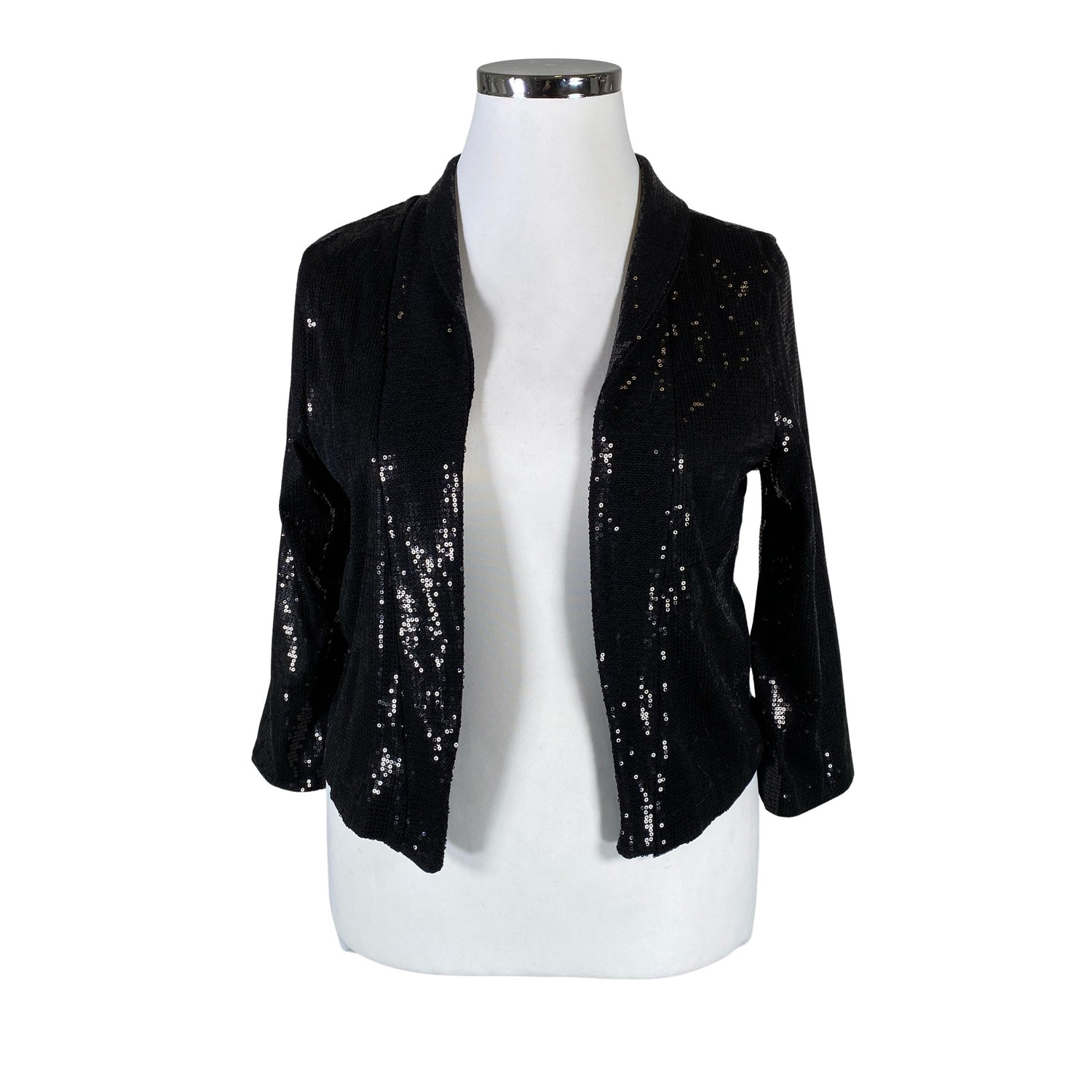 Paljettipinta. Tuotteessa on ohut vuori. Avonainen malli.