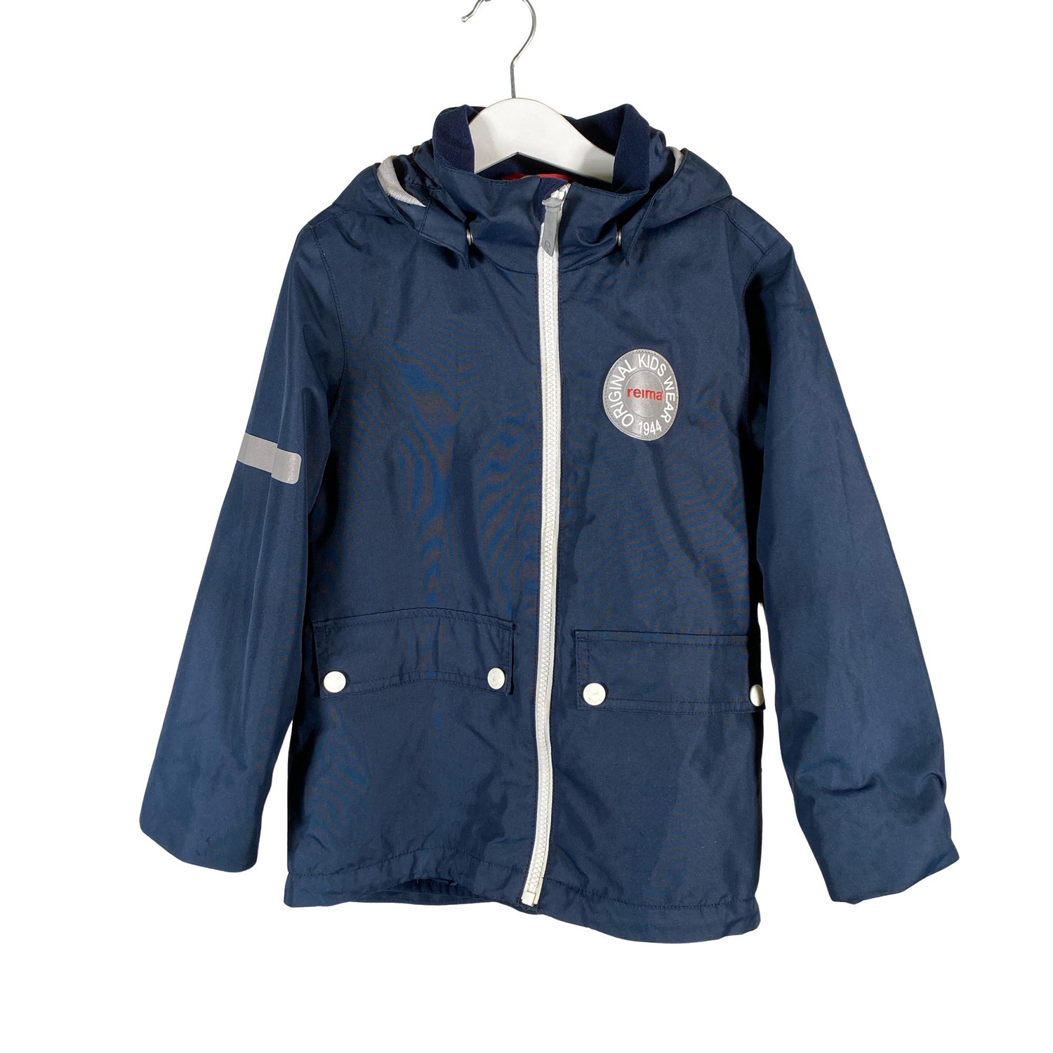 Reimatec Välikausitakki, koko 116 - 122. 3in1 takki (irrotettava sisätakki). Irrotettava huppu. Tuotteessa on muutama nirhauma. Hihan- ja/tai lahkeensuissa on hieman kulumaa. Yleisilme on siisti.
