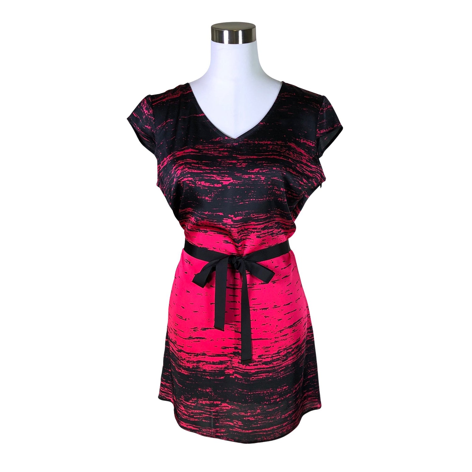 Tuotteeseen kuuluu vyö. Tuotteen pinta on kiiltävä. Solmittava malli.