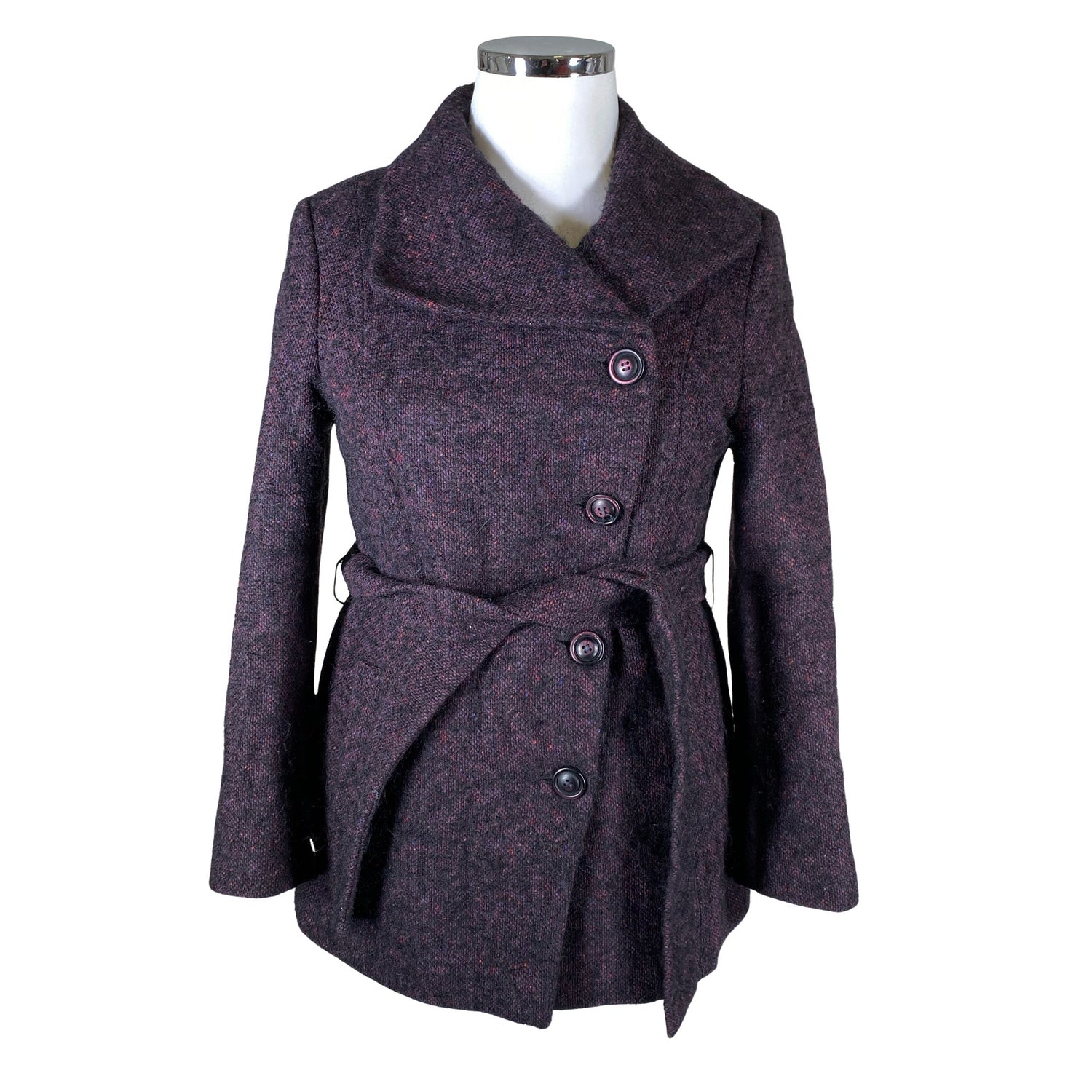 Villasekoitetta. Tuotteeseen kuuluu vyö. Ei vetoketjua. Tuotteen pinnassa on hieman pesu-/käyttökulumaa. Yleisilme on siisti.