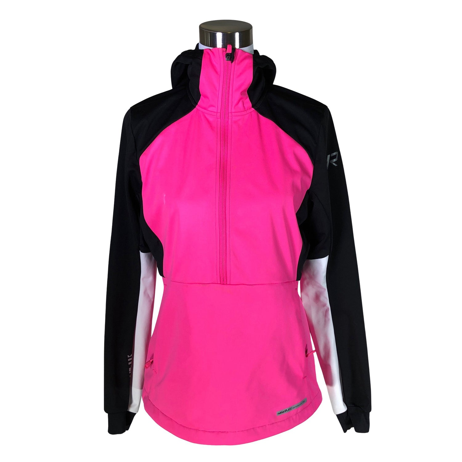 Anorakki. Tuote on osittain joustavaa materiaalia. Tuotteessa on kiristysnyöri helmassa. Tuotteessa on heijastavia yksityiskohtia. Tuotteen pinnassa on aavistus käyttölikaa. Tuote on muilta osin hyvässä kunnossa.