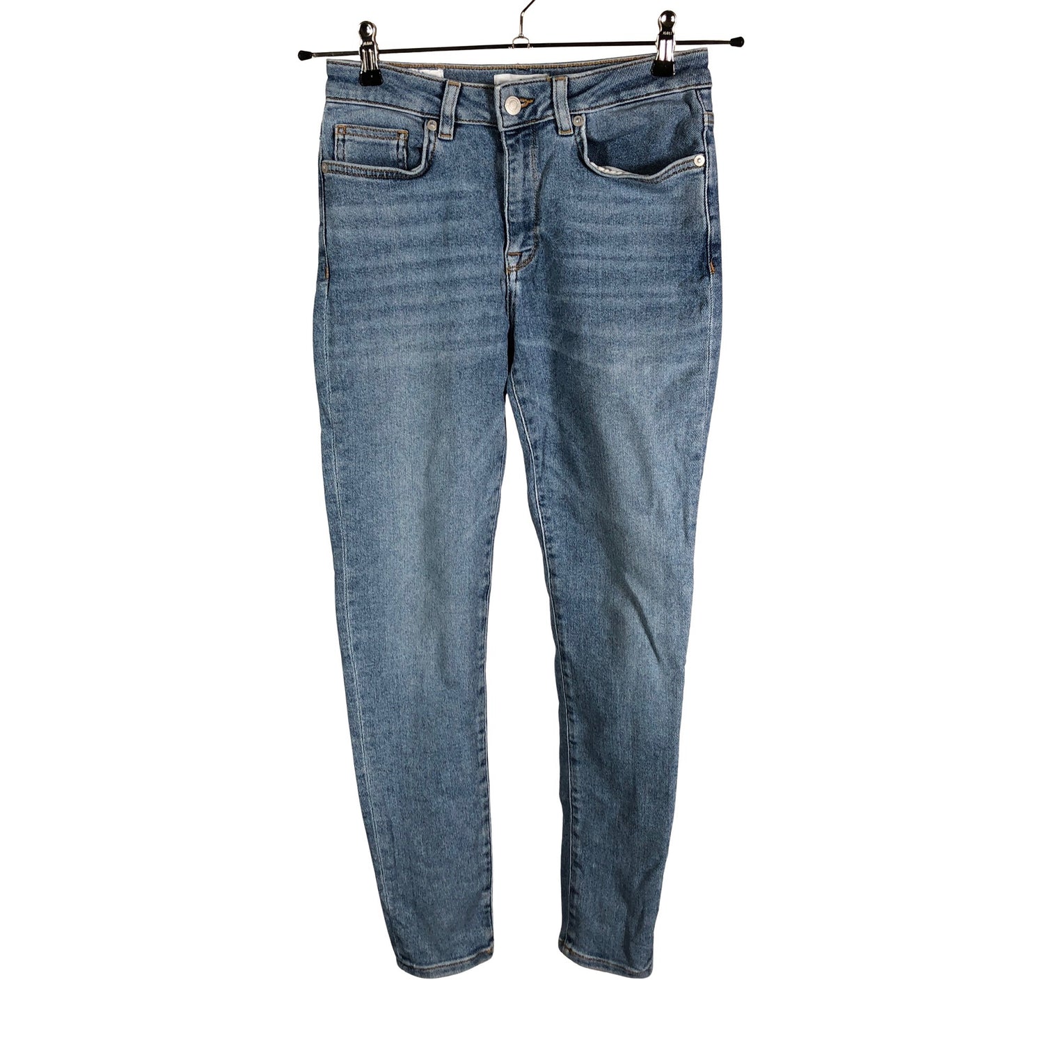 Malli: skinny. Materiaali joustaa. Tuotteen pinnassa on hieman pesu-/käyttökulumaa. Yleisilme on siisti.