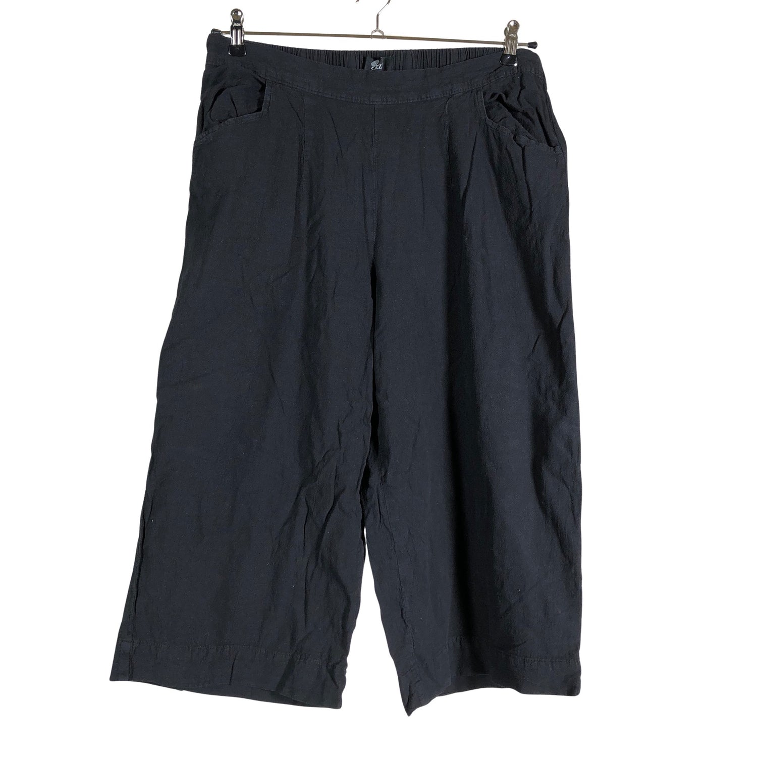 Joustava vyötärö. Tuotteen pinnassa on hieman pesu-/käyttökulumaa. Yleisilme on siisti.