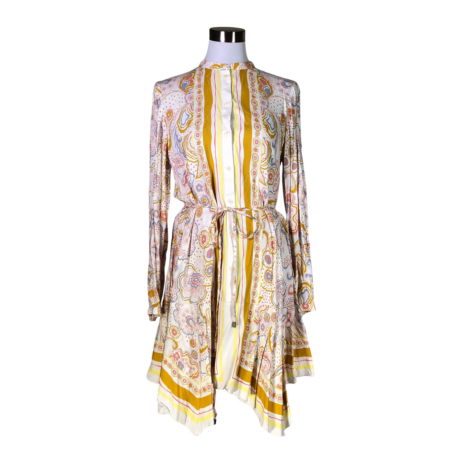 Materiaali ei jousta. Ohutta materiaalia. Solmittava malli. Tuotteeseen kuuluu vyö.