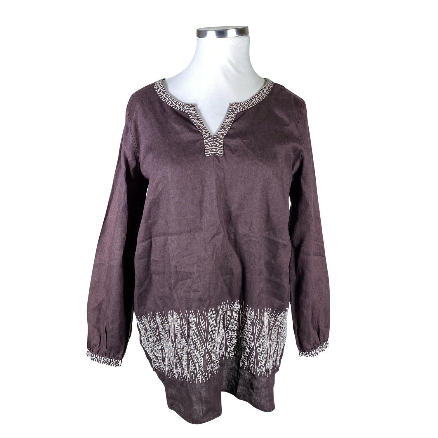 Pellavaa. Materiaali ei jousta. Tuotteen pinnassa on aavistus pesu-/käyttökulumaa. Yleisilme on siisti.