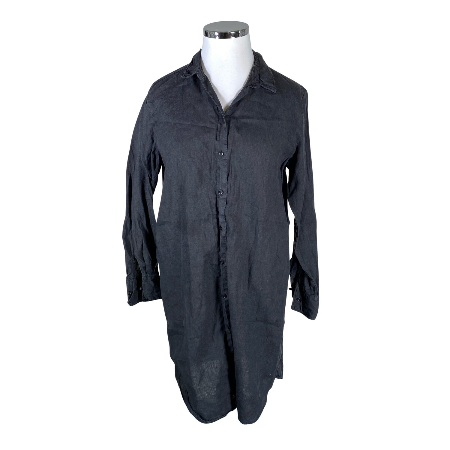 Edessä napit. Pellavaa. Tuotteen pinnassa on hieman pesu-/käyttökulumaa. Tuotteen pinta on aavistuksen haalistunut. Yleisilme on siisti.