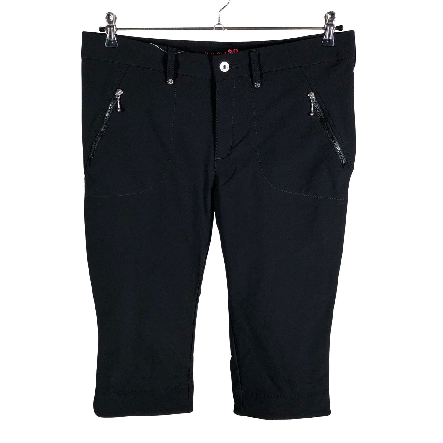 Lahkeissa on halkiot. Tuotteen taskuissa on vetoketjut. Materiaali joustaa hieman.
